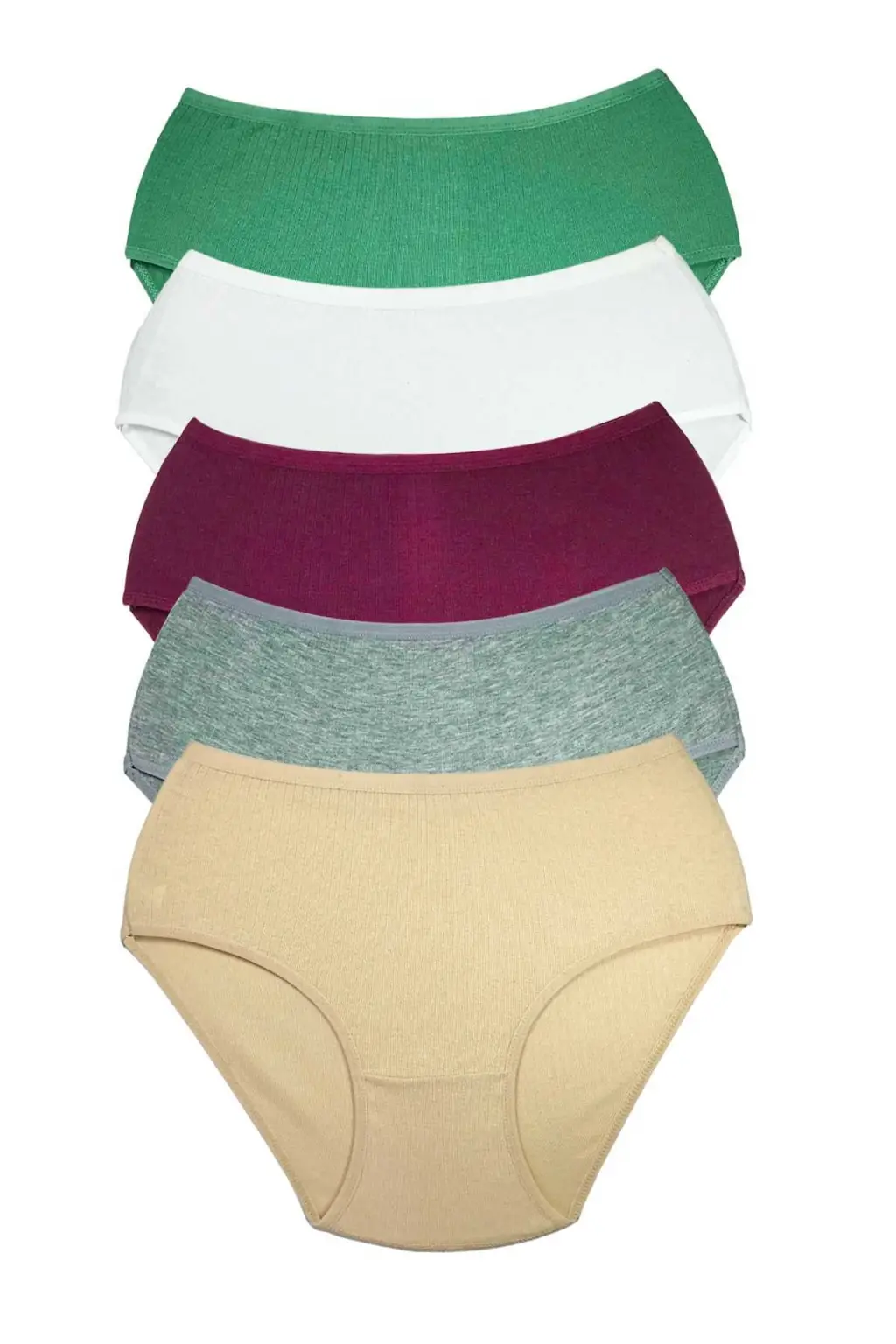 5 Adet Kadın Yüksek Bel Ribana Bato Külot Pamuklu kumaştan üretilmiş olup içeriği: %100 Pamuk tur. Renkleriyle iç dünyana mutluluk katacak modelimiz yumuşak ve esnek dokusuyla bedeninize mükemmel bir uyum sağlamakta ve gün boyu rahat konfor sağlamaktadır. Yıkama talimatlarına uyulduğu takdirde deforme olmaz ve uzun süreli kullanım keyfi sunar. Yıkama talimatları: Renklileri 30 derece sıcaklıkta, beyazları 40 derece sıcaklıkta yıkanmasını tavsiye ediyoruz. Çamaşır suyu veya ağartıcı kullanmayınız. Royaleks ailesi olarak mutlu ve huzurlu günlerde kullanmanızı temenni ederiz. Paket İçeriği: 5 Adet Kadın Yüksek Bel Ribana Bato Külot Renk: Haki Beyaz Mürdüm Gri Melanj Ten