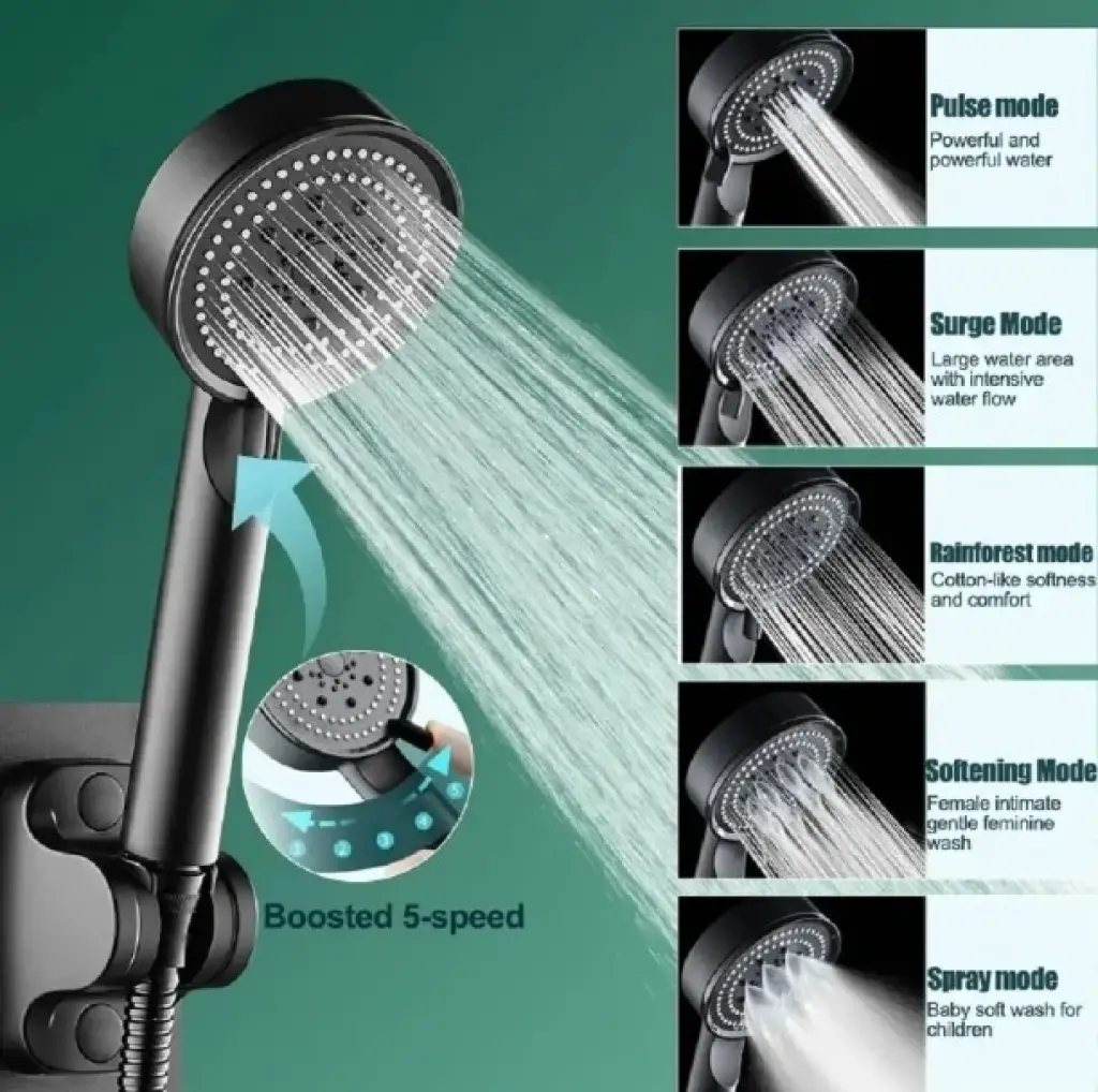 5 Kademeli Duş Başlığı Siyah