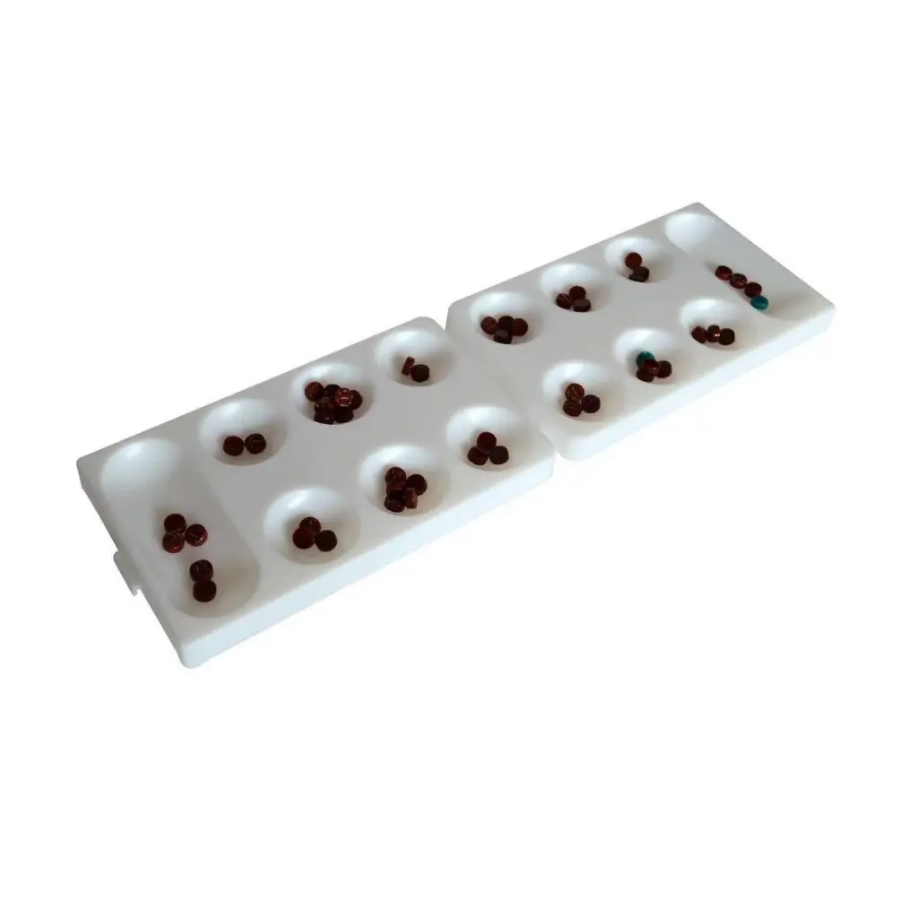 Zeka ve Strateji Oyunu iki kişi ile oynanır. Oyun platformu üzerinde karşılıklı 6'şar adet olmak üzere 12 küçük kuyu ve her oyuncunun taşlarını toplayacağı birer büyük hazine bulunmaktadır.