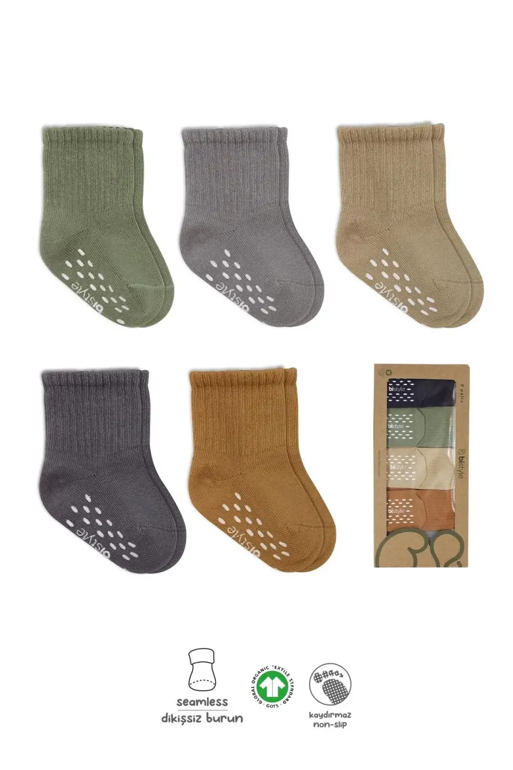 5'li Penye Kaymaz Düz Soket Çorap 10121 Yeşil