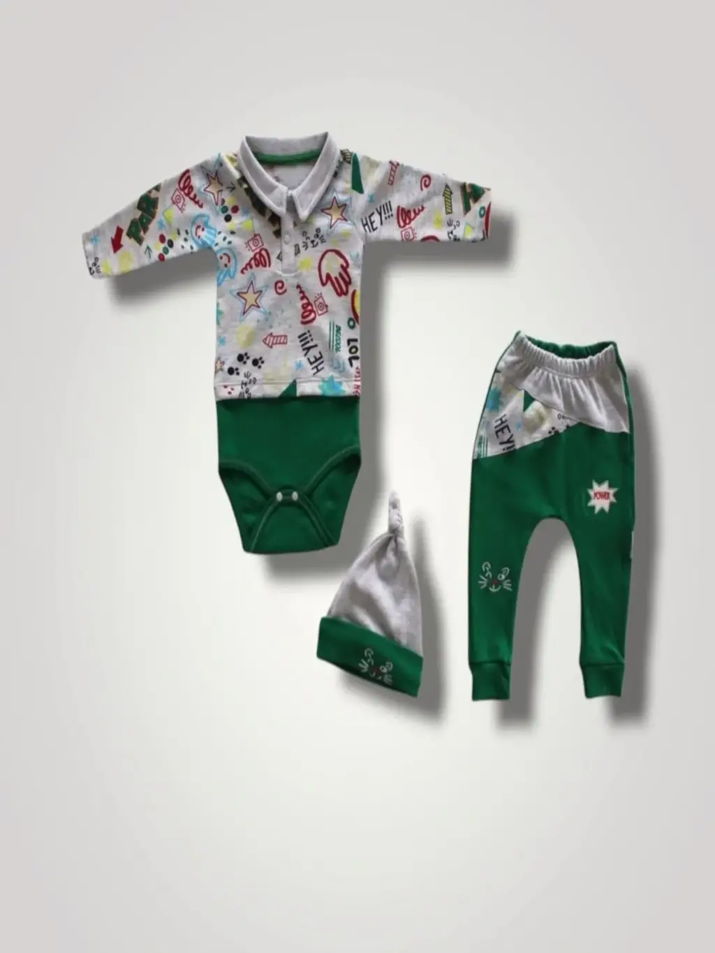 Omarı Şirin Power Kedi Nakışlı Bebek Takımı - Yeşil