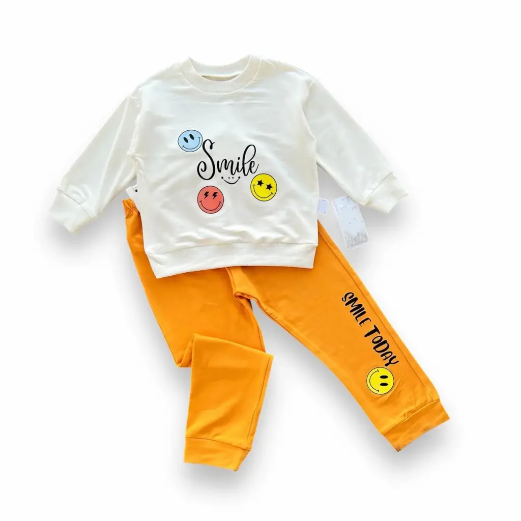 Modern Bebek Takımı Emoji Baskılı Penye Kumaş Turuncu