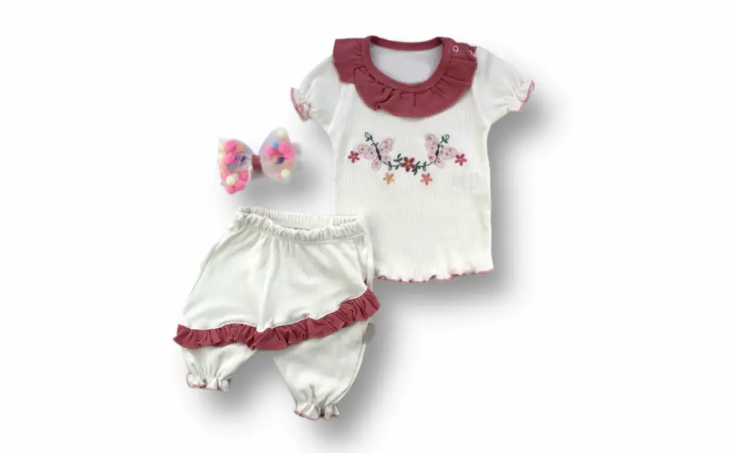 Omarı Nar Çiçeği Roman Şalvar Kısa Kollu 3'lü Bebek Kız Takımı