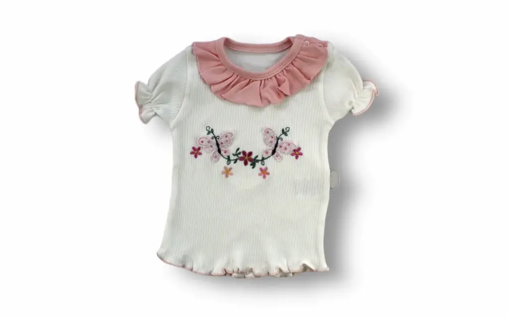 6-9 9-12 12-18 Ay Çiçek Nakışlı Roman Şalvar Bandanalı Kısa Kollu Sweat 3lü Kız Bebek Takımı