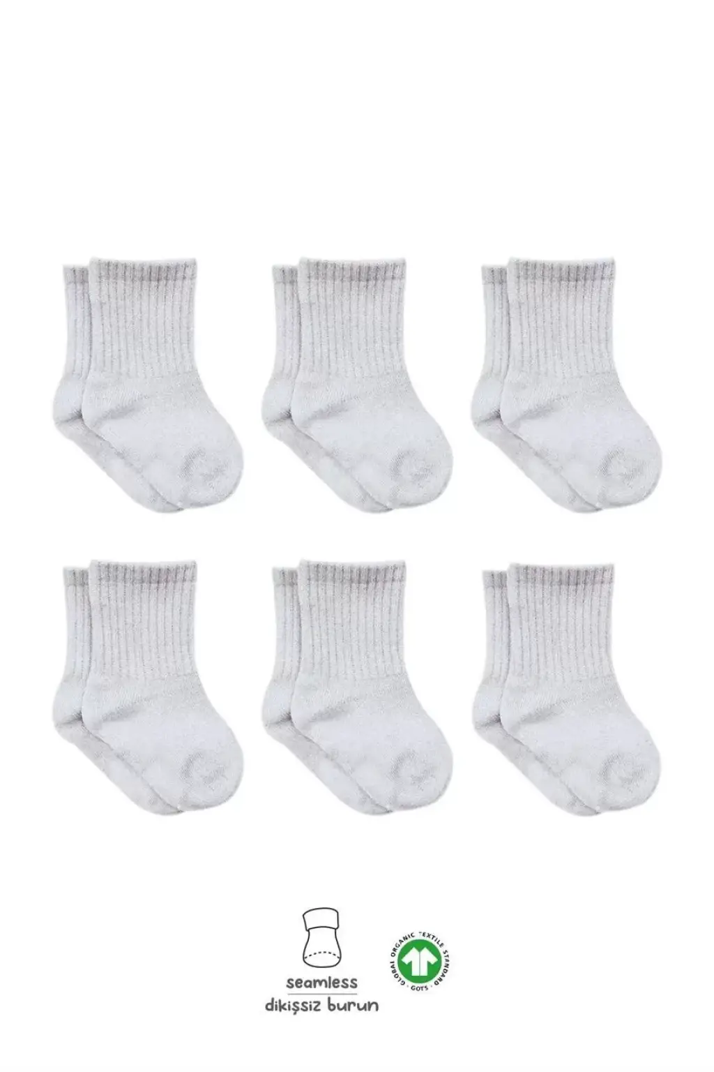 Omarı Rahat ve Şık 6lı Düz Soket Çorap - Gri Melanj