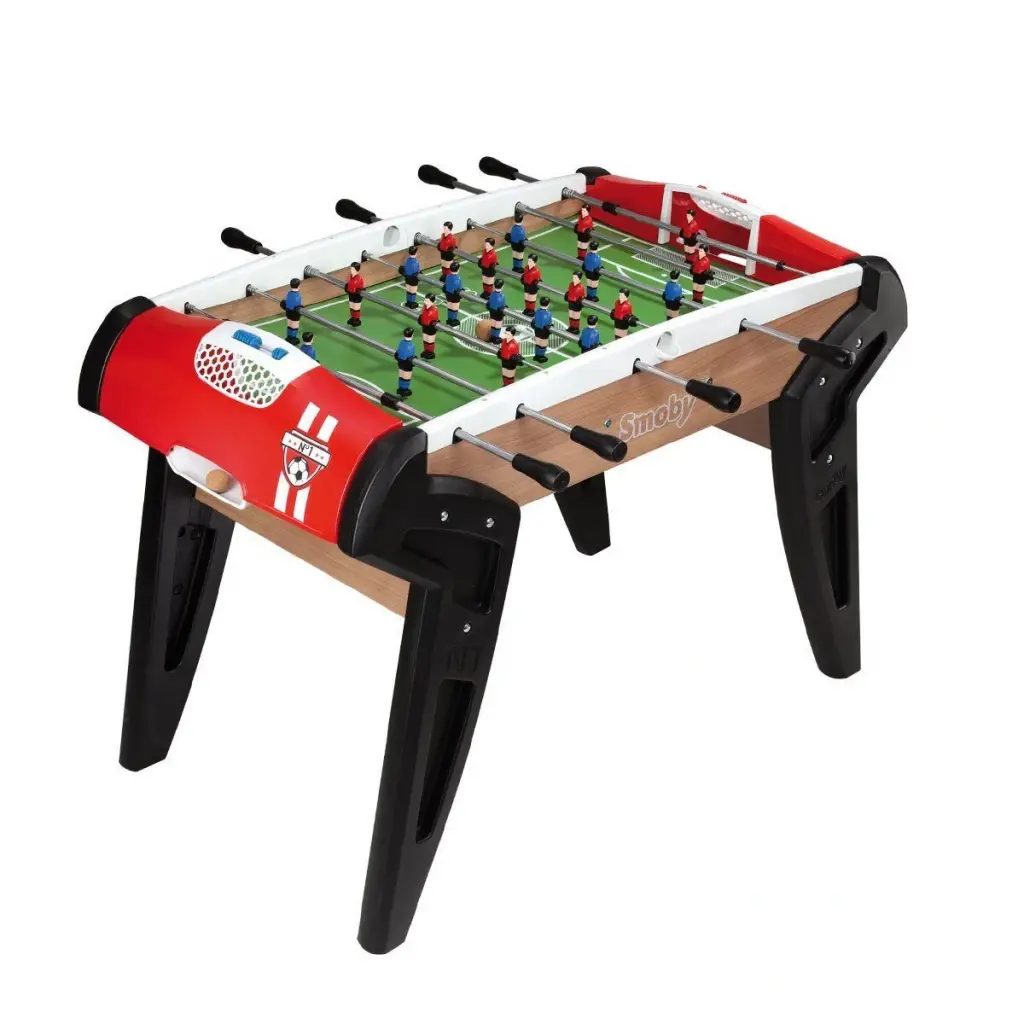 Oyun sahasında çimlerin dizilişi ve uygun işaretlemeler ile birlikte, top atışında 2 gol ve top yakalayıcı, 2 gol sayacı, oyuncu figürleri ve ergonomik kulplar ile sağlamlaştırılmış teleskopik oyun çubukları çok renkli bir şekilde ekiyor.