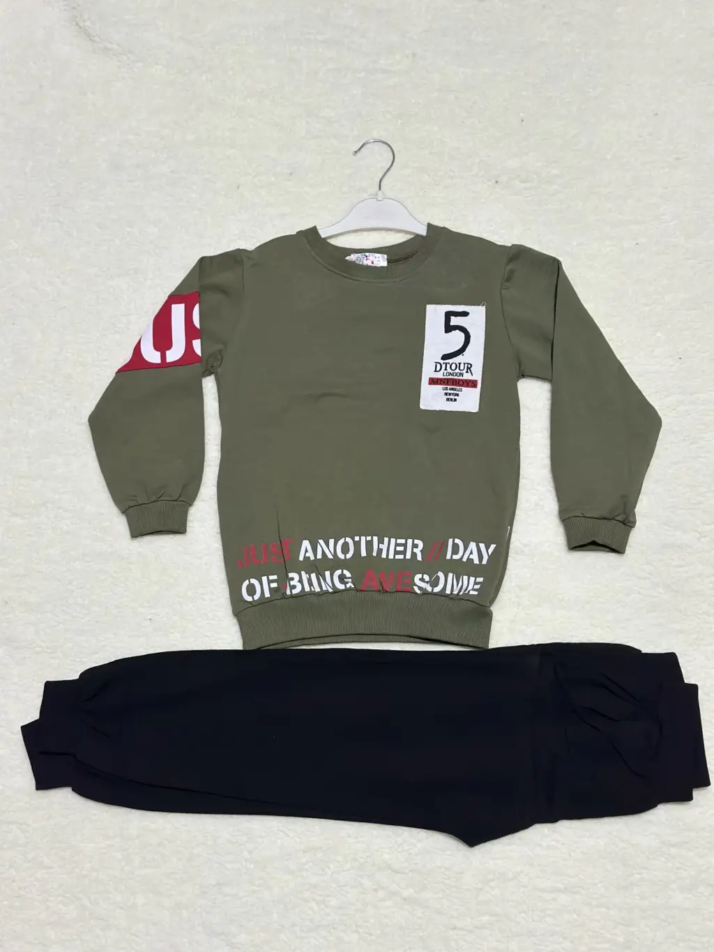 8-9 yaş arası erkek çocuklar için tasarlanmış olan 5 dtour marka baskılı alt üst takım, hem şık hem de rahat bir seçenek sunuyor.