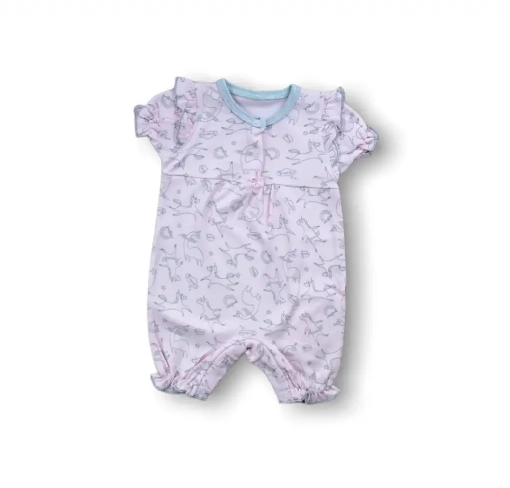 9-12 12-18 18-24 Ay Cemre Uçan Balon Baskılı Kısa Kollu Kız Bebek Tulumu