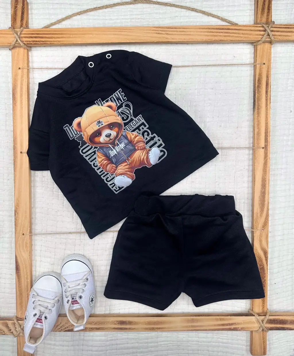 Yumuşak Kumaşlı Dansçı Ayıcık Baskılı 2li Bebek Takımı