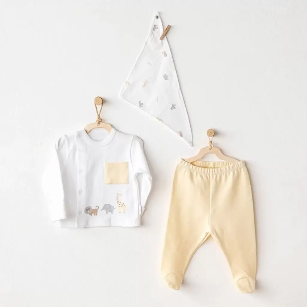 Bistyle 3'lü Zıbın Takım Welcome Baby Duck 13104 Sarı-Ekru
