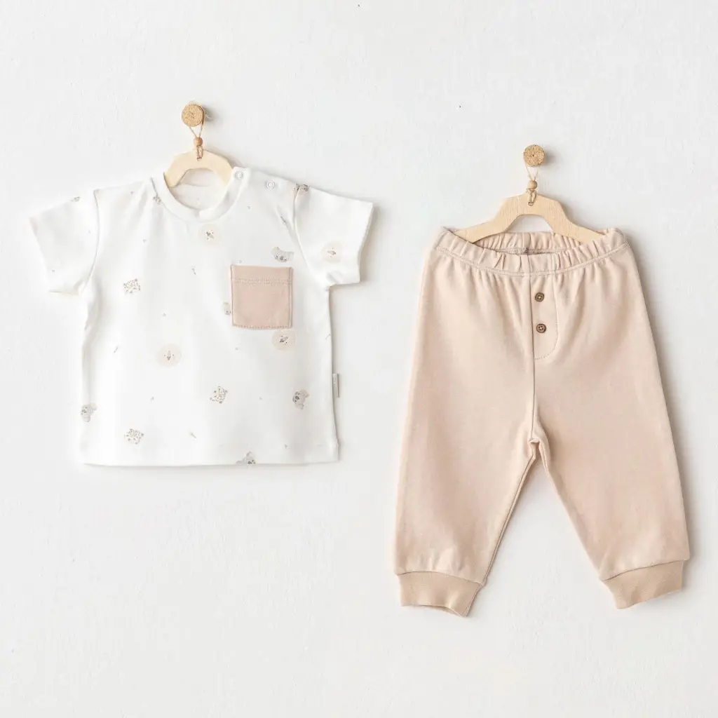 Omarı Sevimli Hayvan Desenli Bebek 2'li Takım Beige