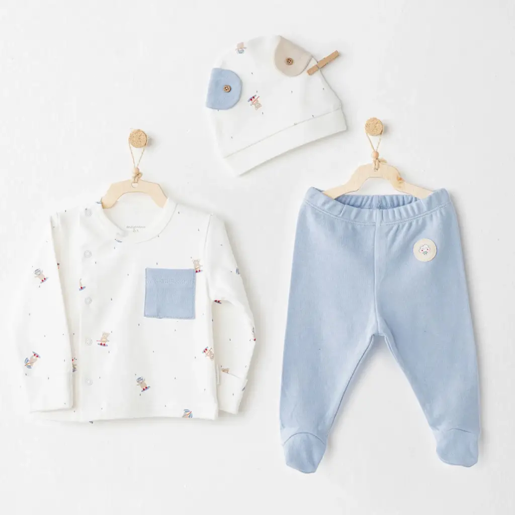 Bistyle 3'lü Zıbın Takım Welcome Baby Duck 13104 Sarı-Ekru