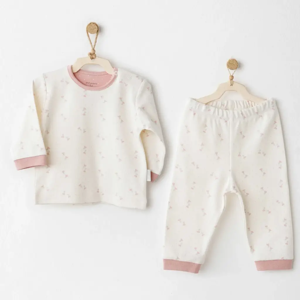 4-10 yaş kız çocuk pembe Armalı yeşilbiye detaylı alt üst ikili takım