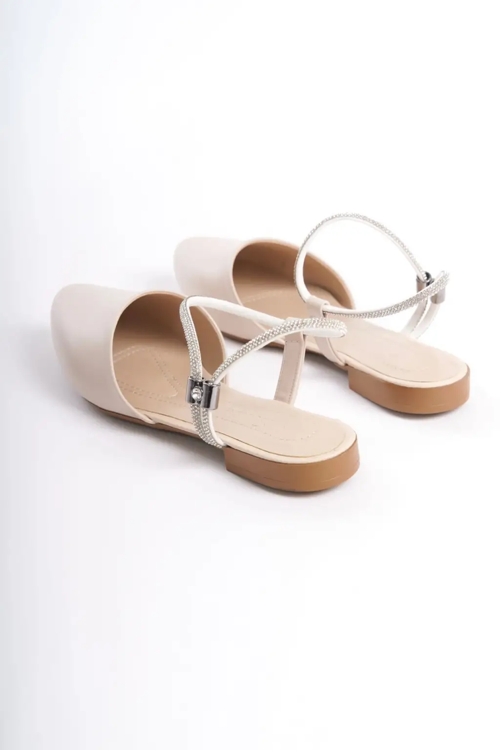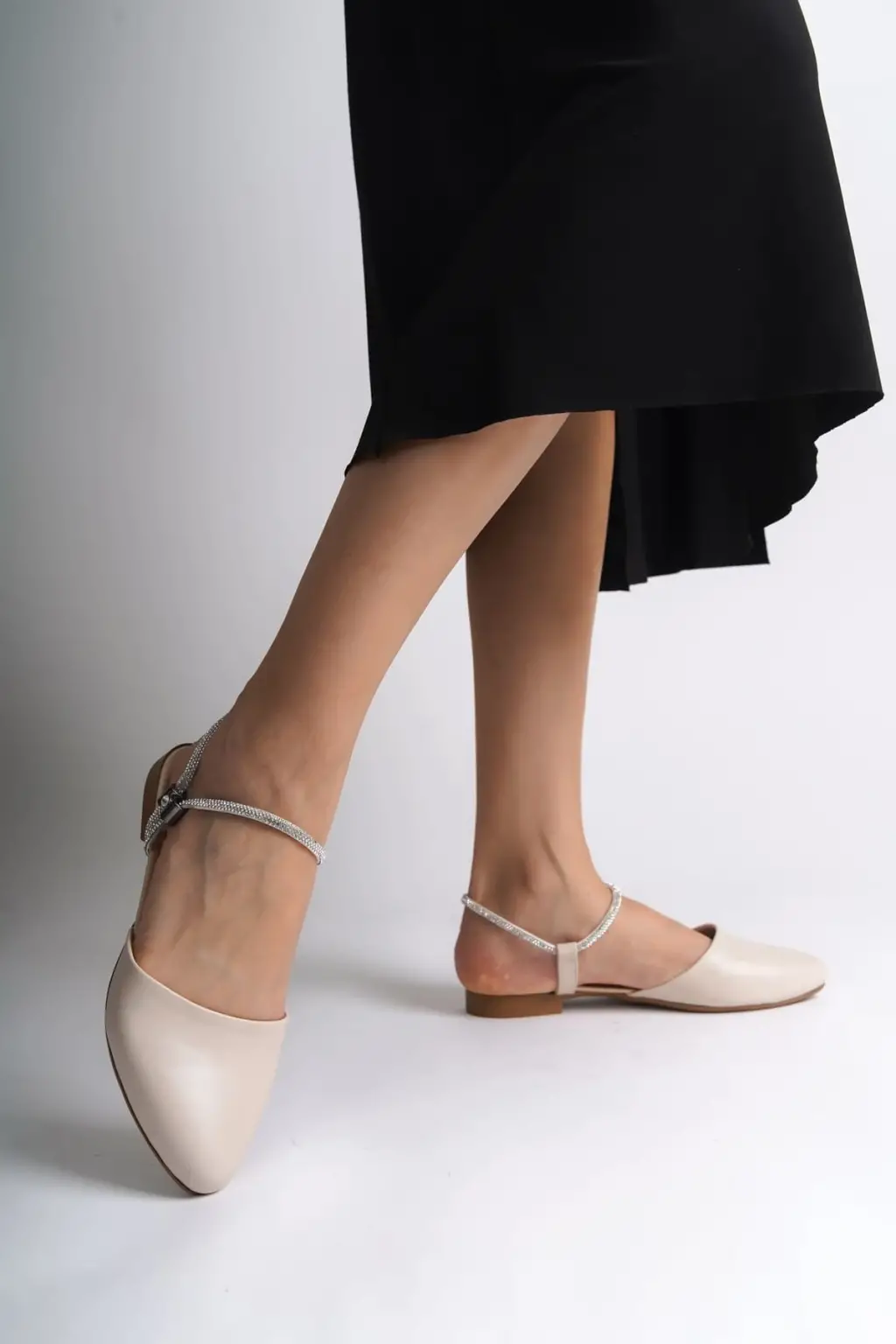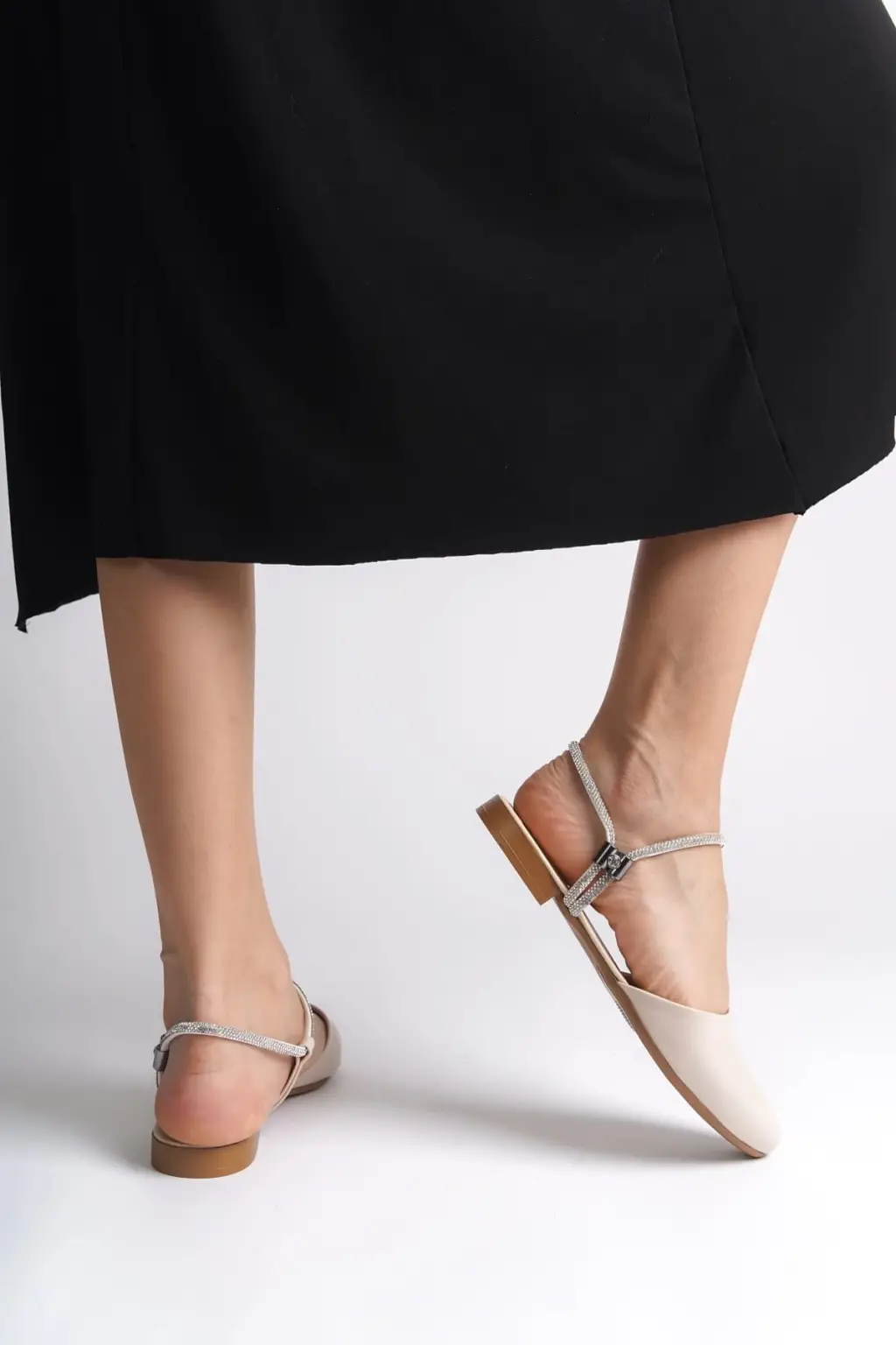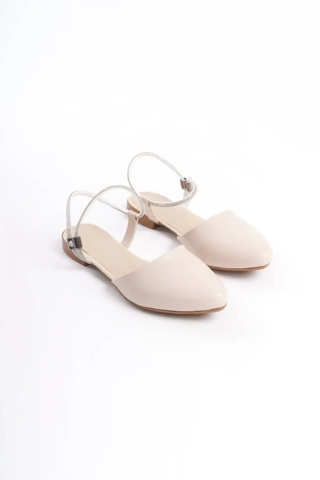 Elegant Bilekten Taş Detaylı Bayan Babet Ayakkabı