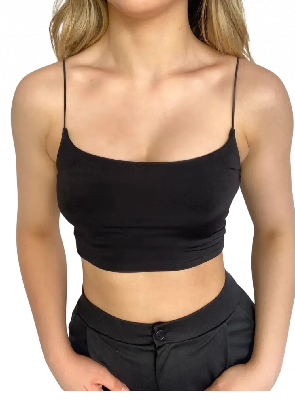 Farklı kesimi ve zamansız siyah rengi ile Askılı Crop Bluz, sezonun modasına ayak uydururken rahatlığı da ön planda tutan bir tasarım. Her bedene uygun olması ve kombinlenebilirliği sayesinde farklı stilleri yansıtma imkanı sunar. Hem şık hem de rahat bir alternatif arayanlar için ideal bir seçim.