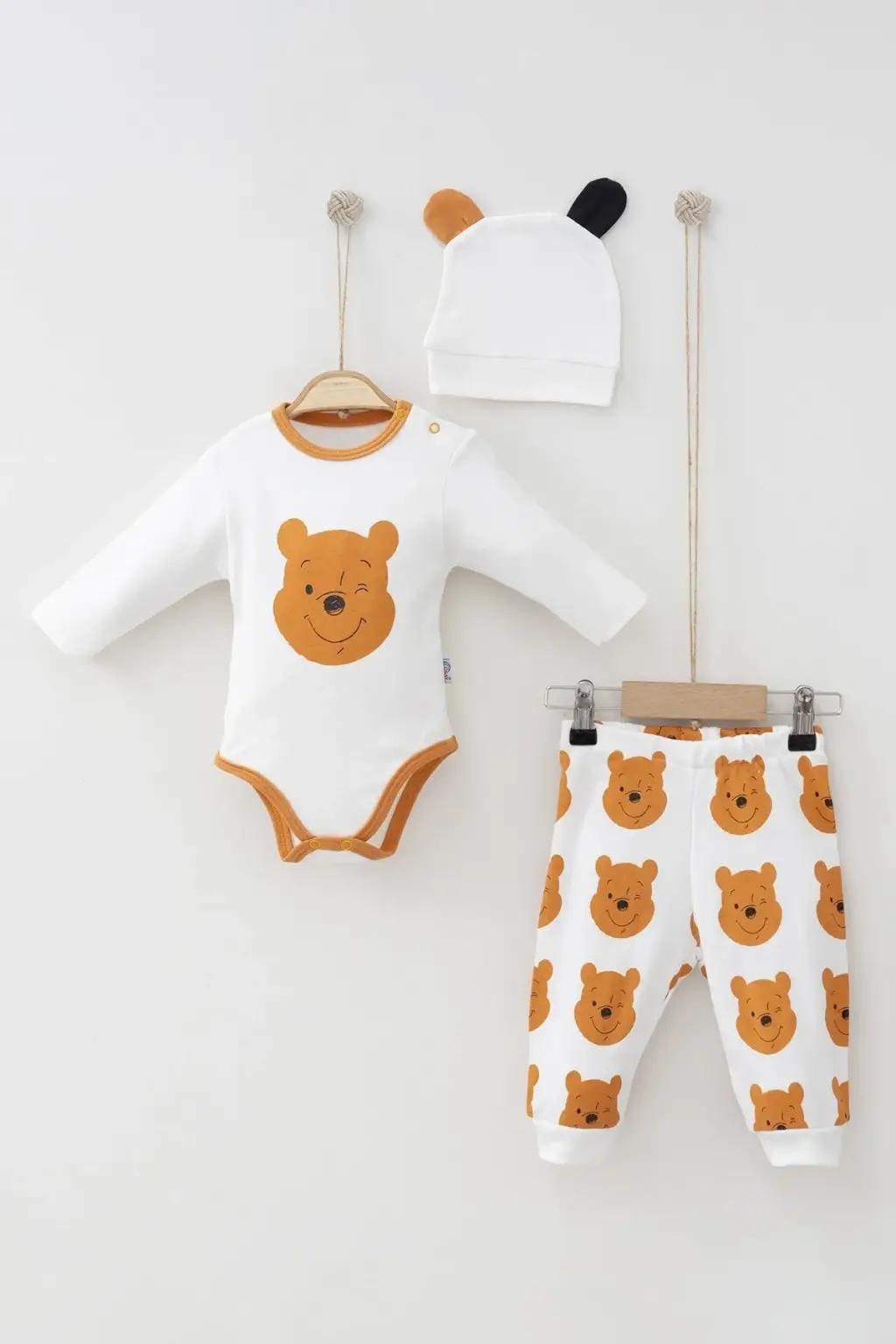 Ayıcık Desenli Şapkalı Erkek Bebek Takım