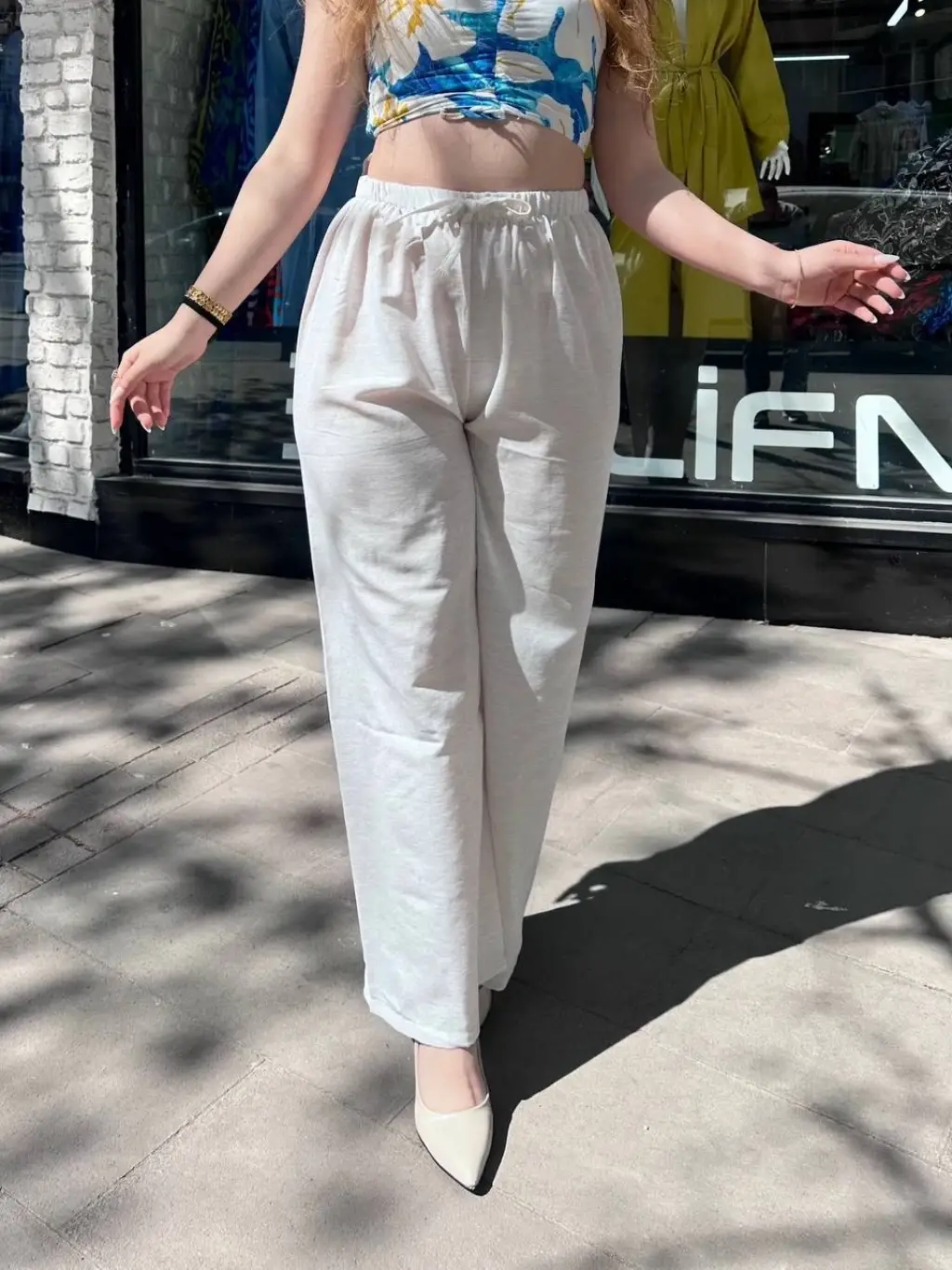 Bağcıklı Keten Pantolon Krem ile şıklığı ve konforu bir arada yaşayın!