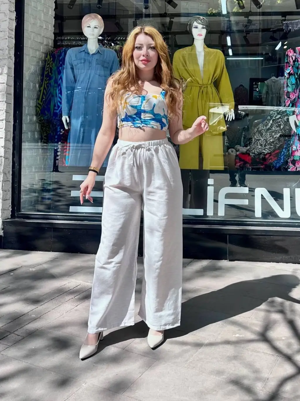 Şıklık ve rahatlığı aynı anda sunan Bağcıklı Keten Pantolon Krem, gardırobunuzun vazgeçilmez parçalarından olmaya aday. İster günlük kullanımda tercih edin, ister özel davetlerde şıklığınızı konuşturun.