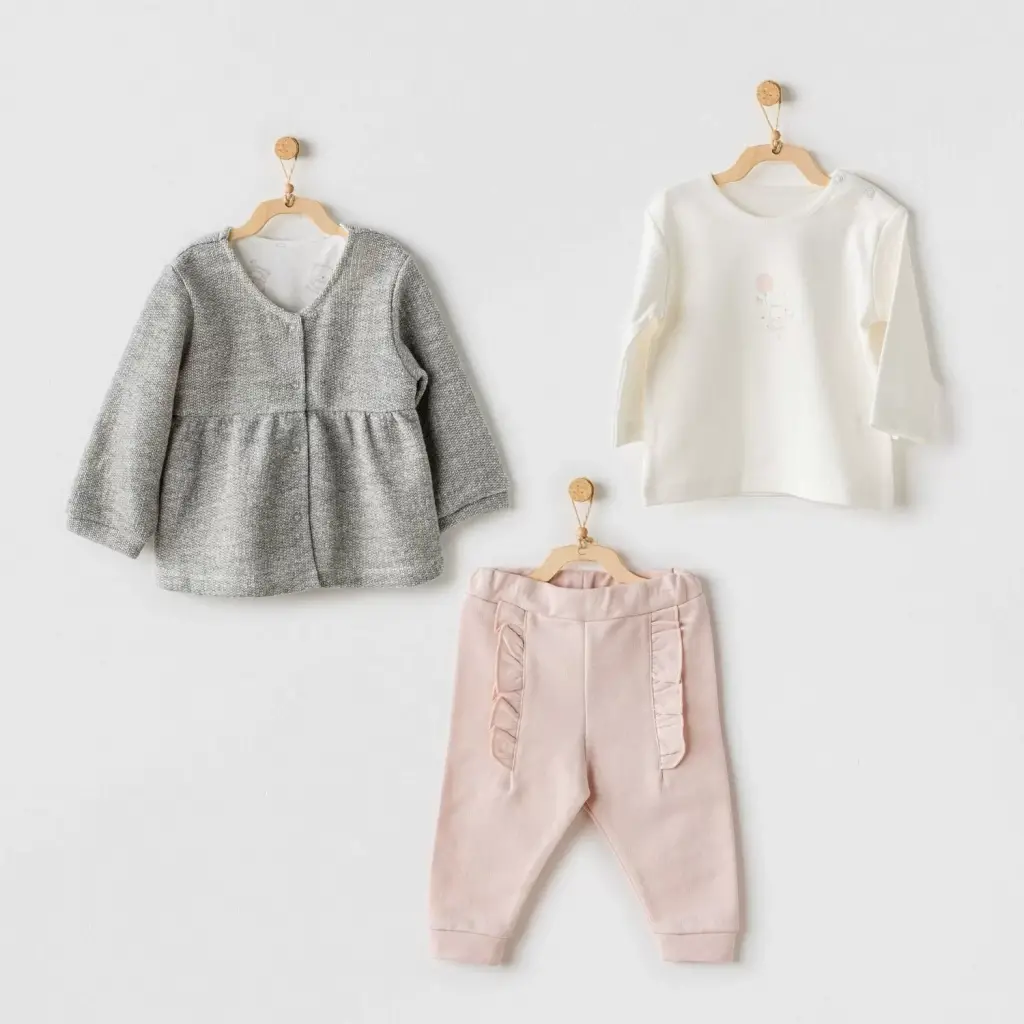 Ballerina 3lü Bebe Takım Grey Ecru Pink