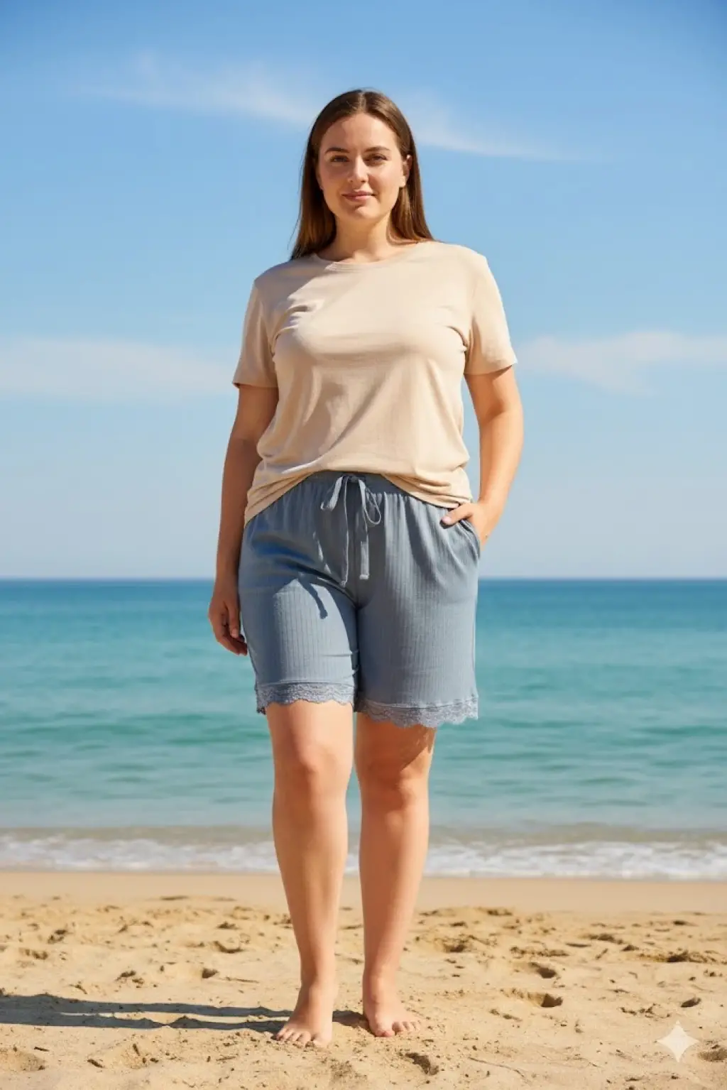 Müslin kumaş şort bağcıklı bej pt