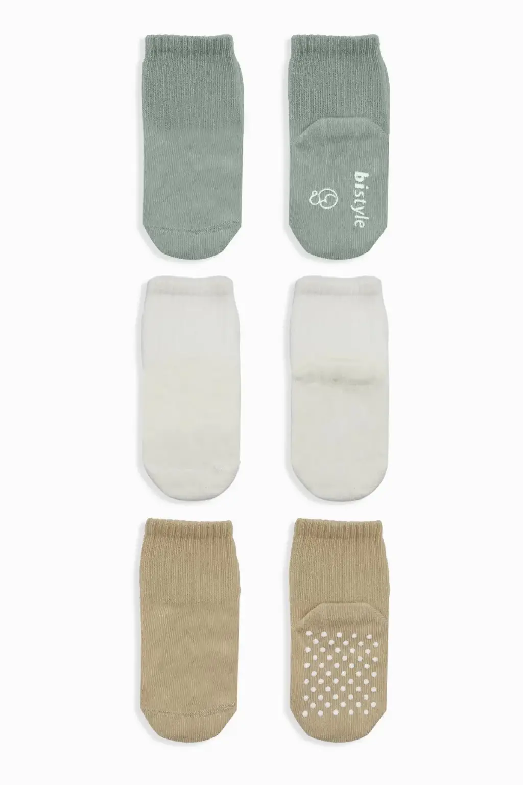 Basic Kaymaz Penye Soket Çorap 3'lü Bs10107 Nil Ekru Bej