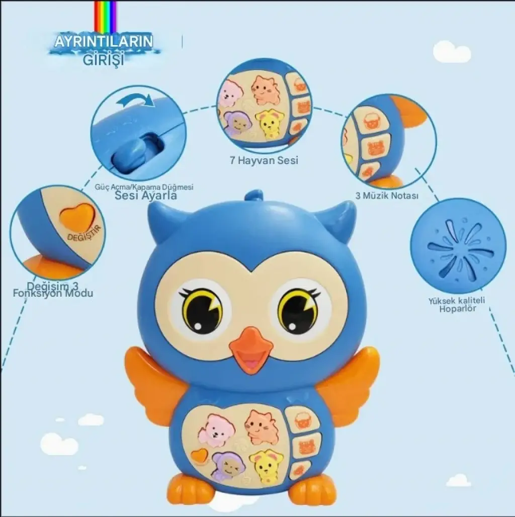 Baykuş Eğitici Bebek Piyanosu - Mavi