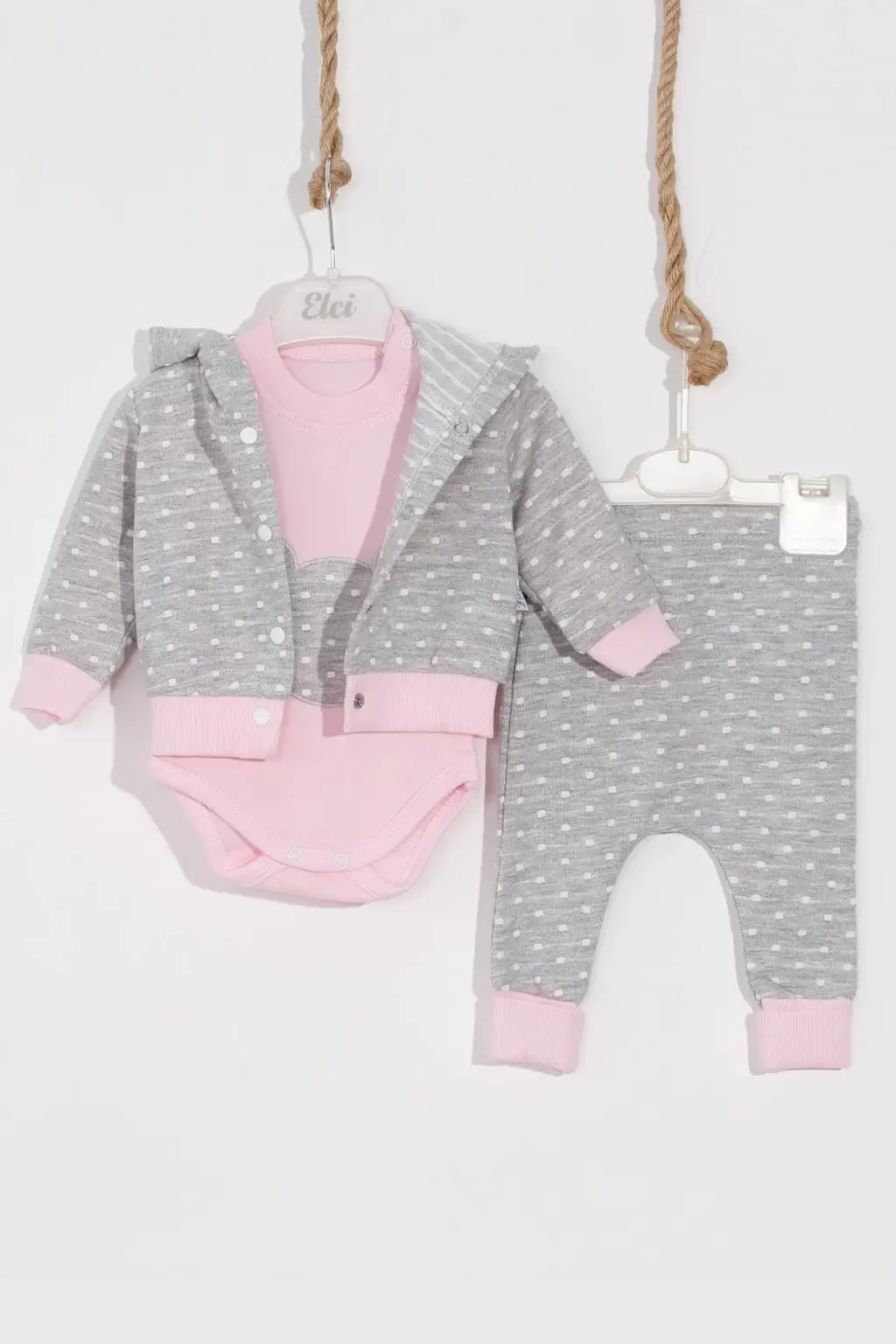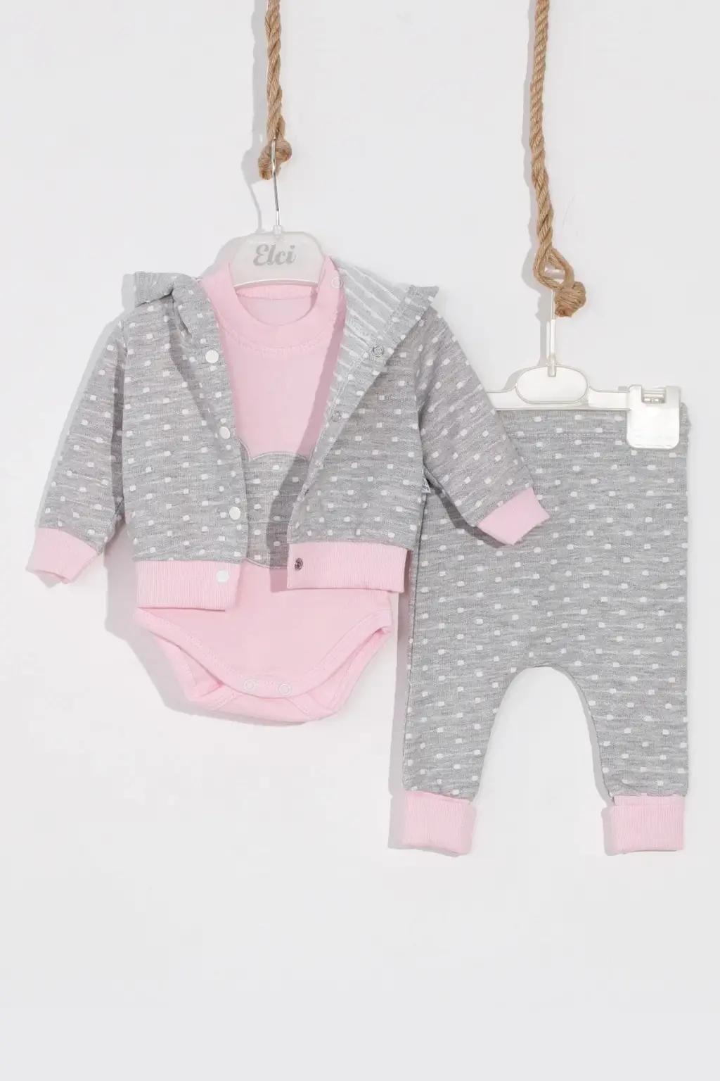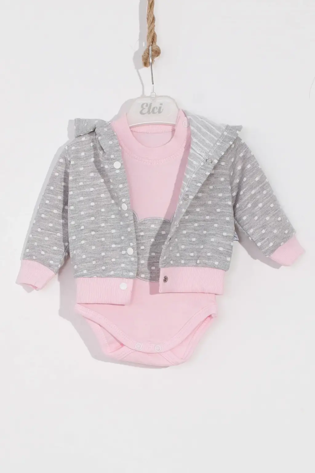 Bear Nakışlı Puanlı Pamuklu 2'li Kız Bebek Takımı