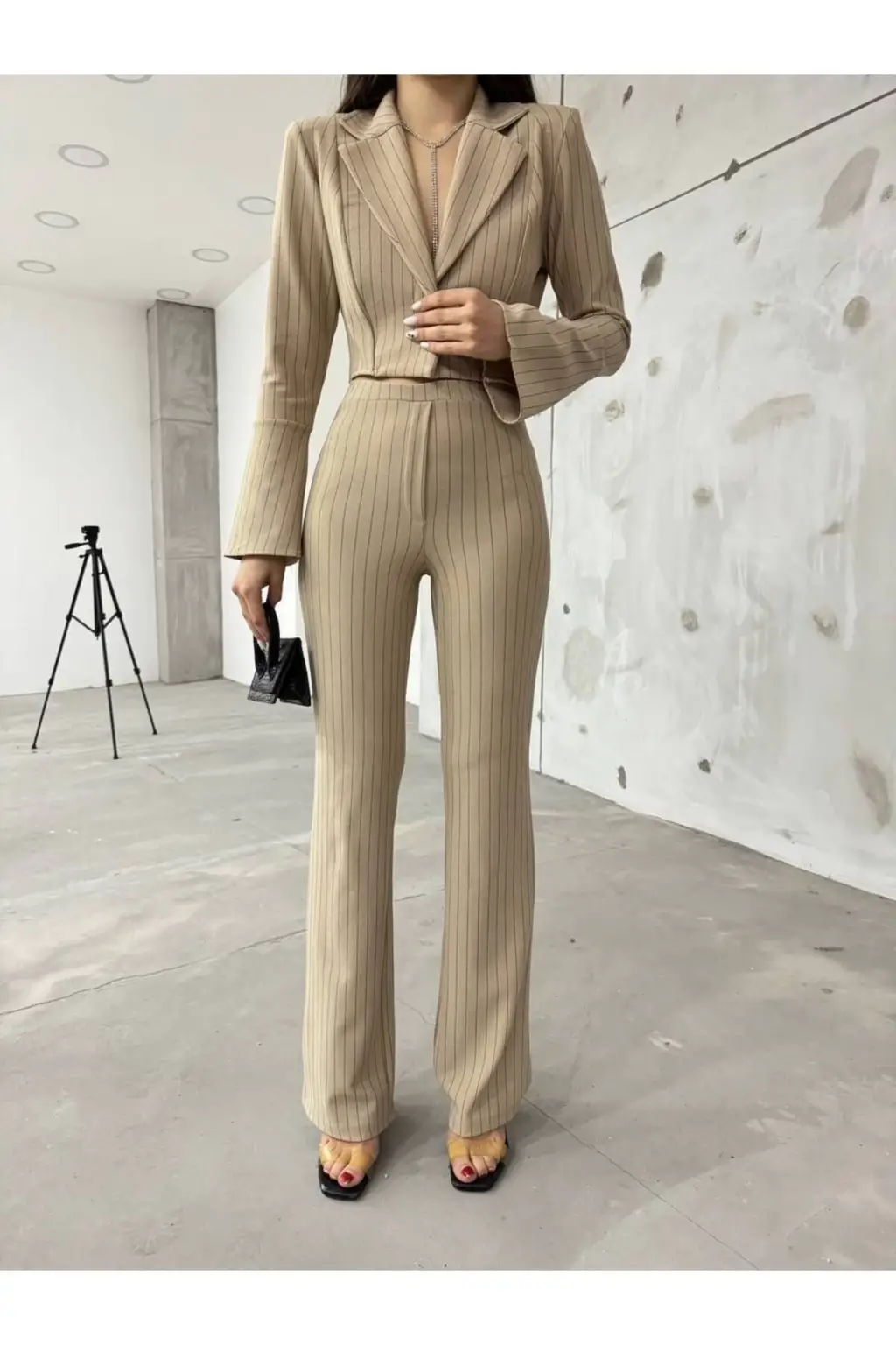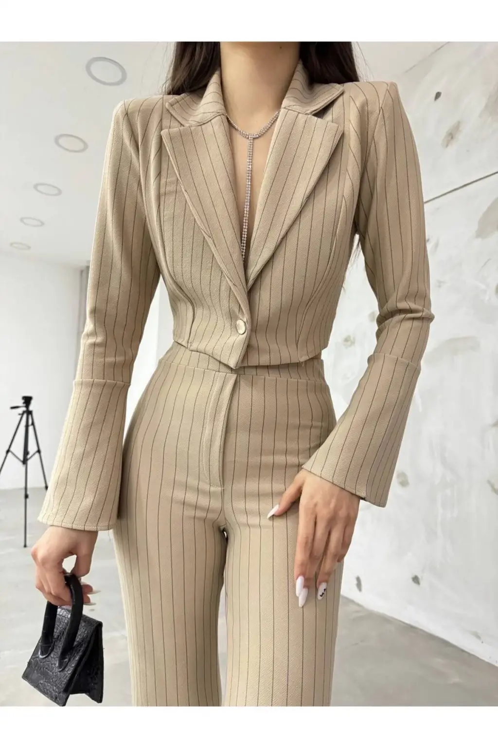 Pantolon: İtalyan çizgili, yüksek bel
