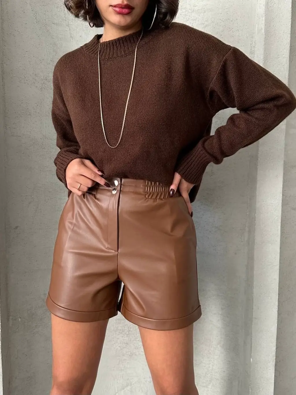 Şıklığı ve rahatlığı bir arada sunan Beli Lastikli Çıtçıtlı Deri Şort ile tarzınızı konuşturun. Kahve rengi ve deri dokusu ile şıklığı ön plana çıkan bu şort, günün her anında şık ve rahat bir görünüm sağlar.