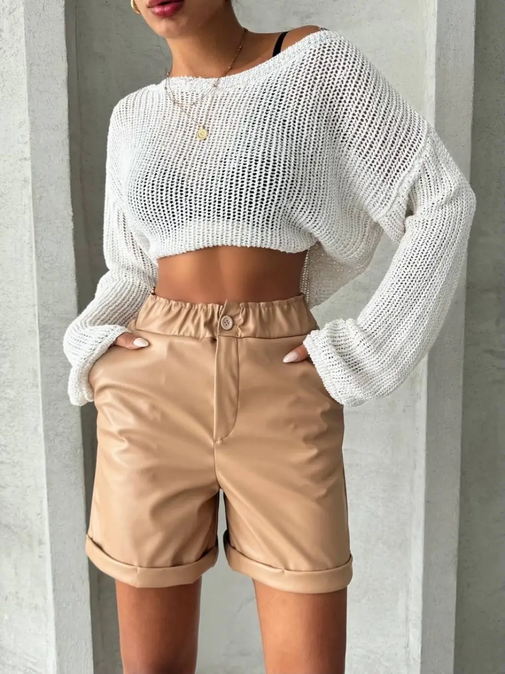Beli lastikli duble paça deri şort bej w24755, şık ve rahat tasarımıyla öne çıkıyor. İster günlük şıklıkta kullanın, ister özel bir davette. İşte ürünün özellikleri: