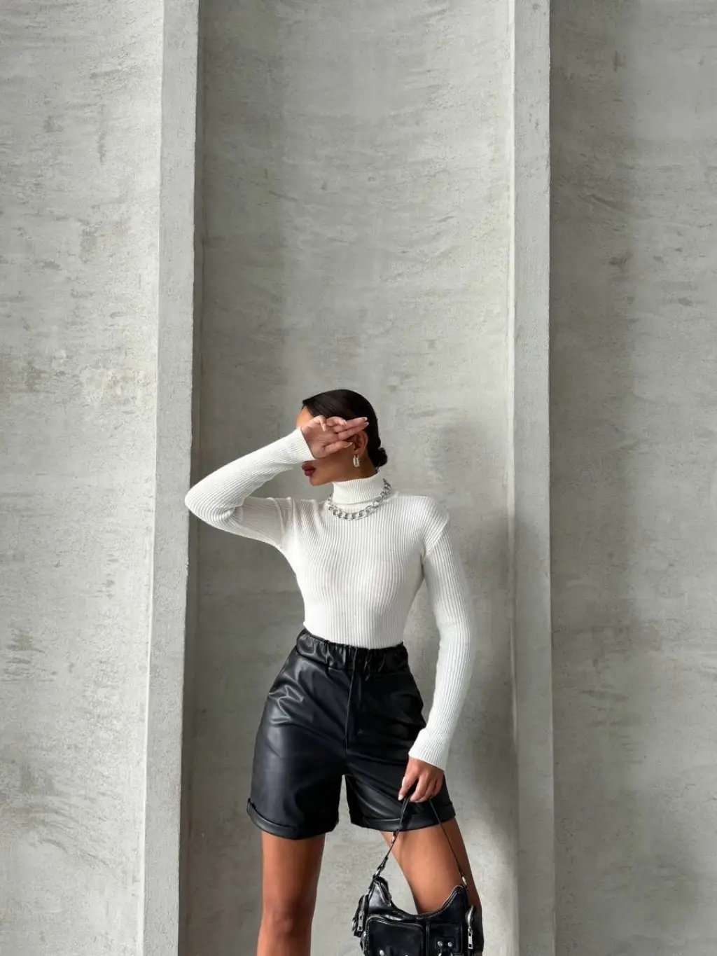 Şıklık ve rahatlık arayan kadınlar için ideal bir seçenek olan Beli Lastikli Duble Paça Deri Şort Siyah, gardırobunuzun vazgeçilmezi olmaya aday!