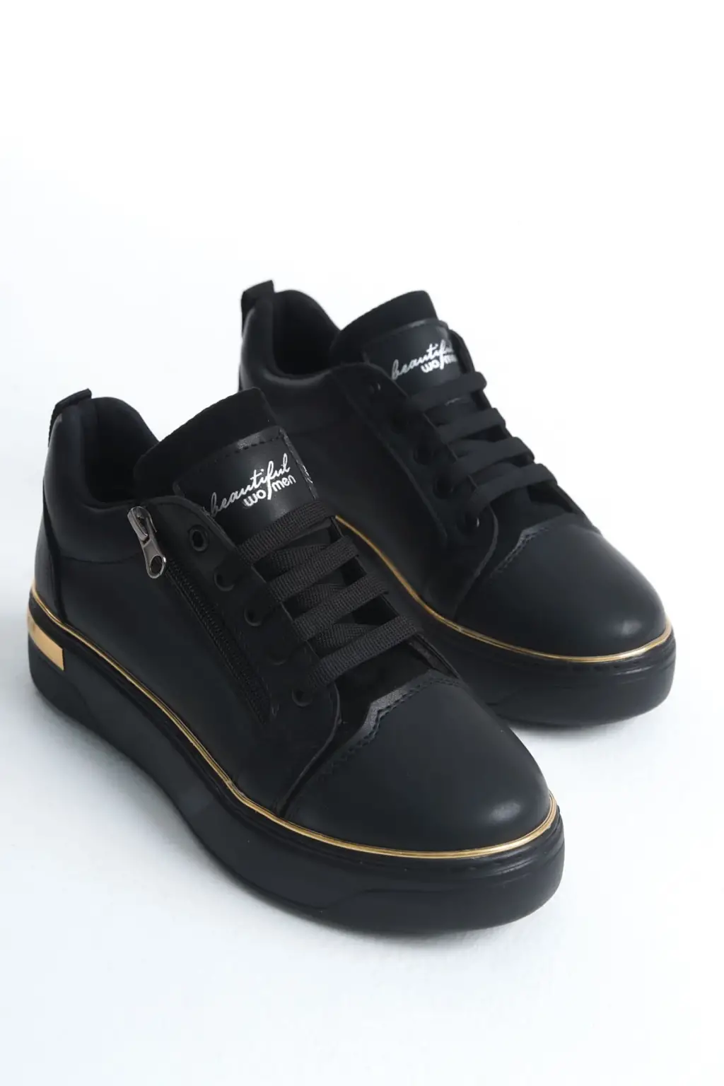 Şık Bağcıklı Spor Ayakkabı Tabaan Bayan - Siyah/Altın