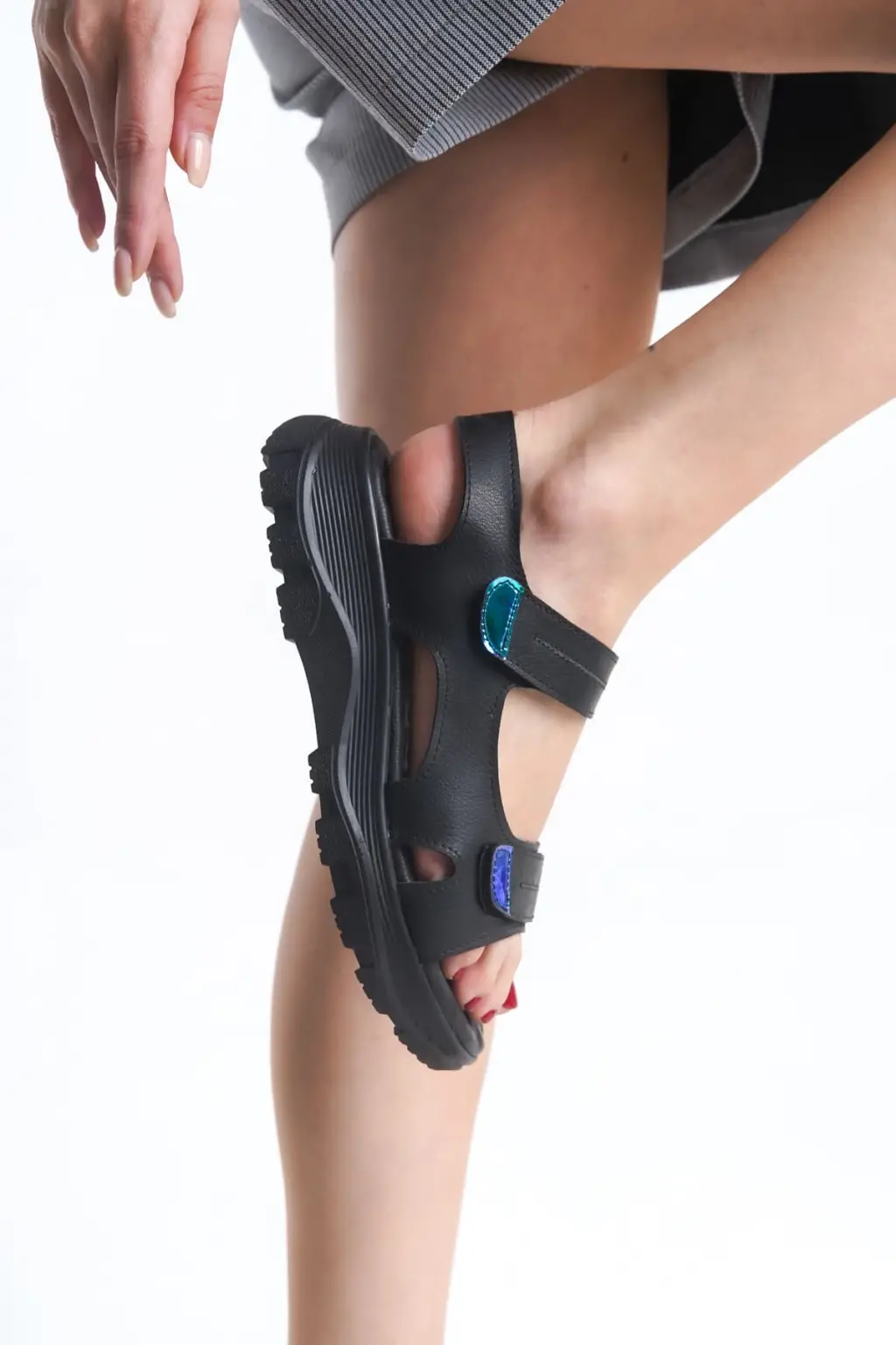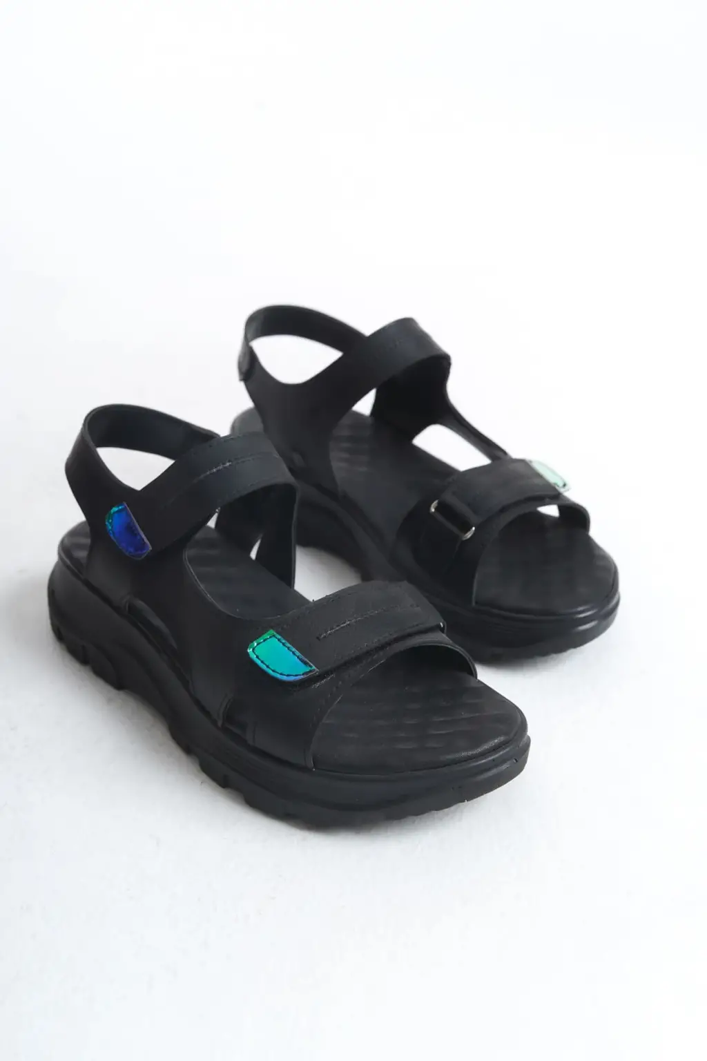 Şık Cırt Cırtlı Tabanlı Bayan Sandalet - Siyah