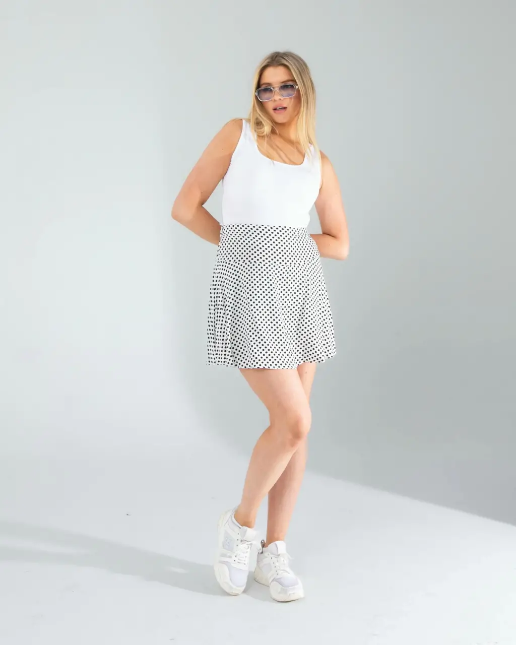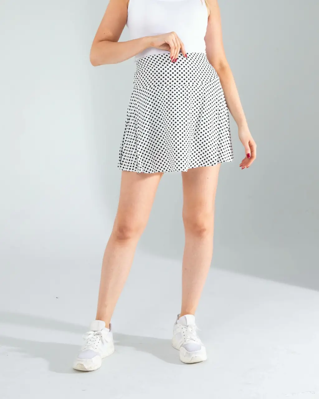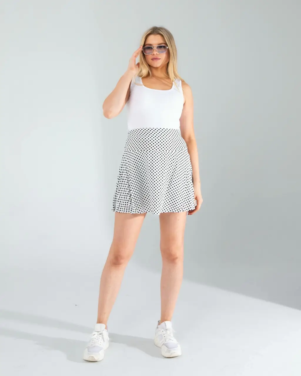- Günlük Şıklık: Beyaz puantiye desenli mini şort eteğinizi, sade bir beyaz tişört ve beyaz spor ayakkabılarla kombinleyin. Üzerine kot ceket ekleyerek rahat ve şık bir görünüm elde edebilirsiniz.