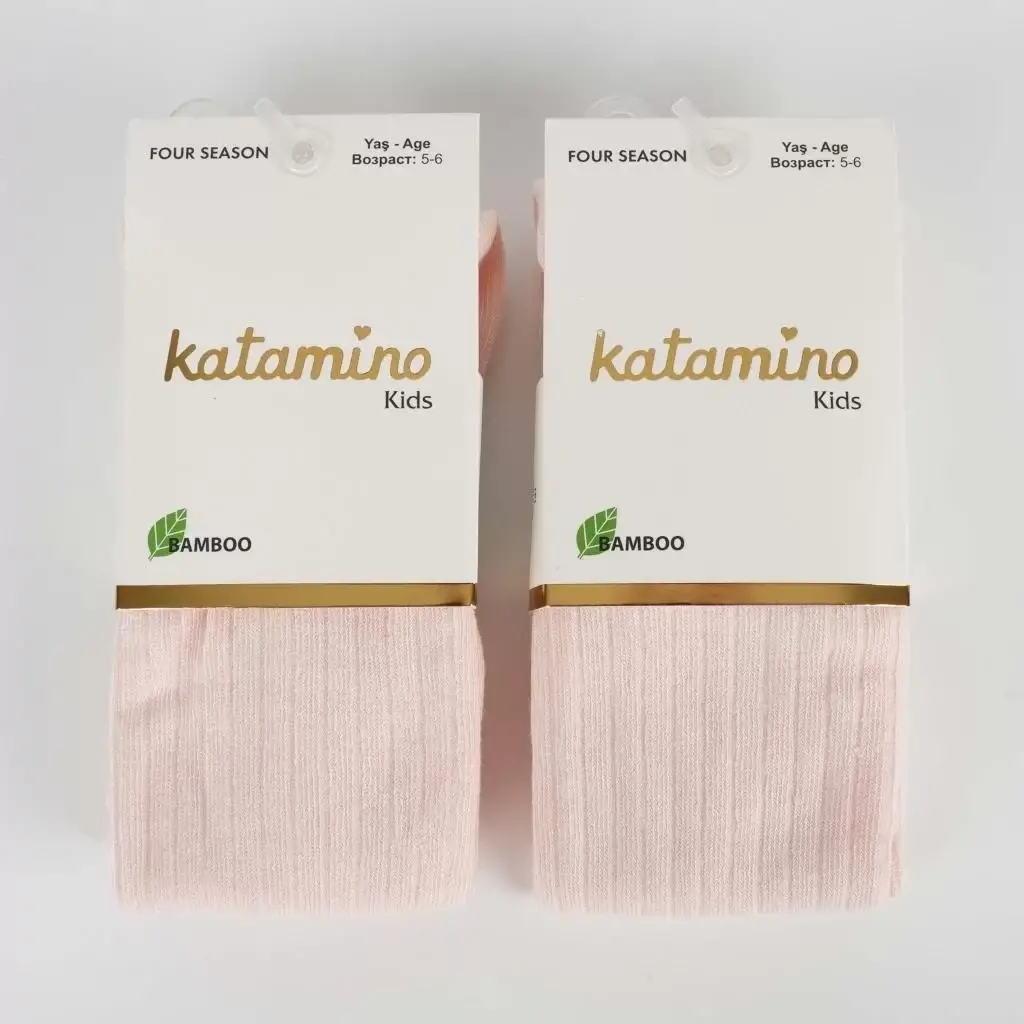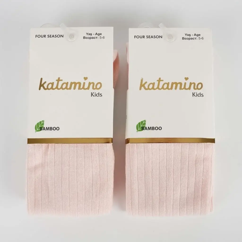 Omarı Bambu Dokulu Çocuk Külotlu Çorap - Pudra