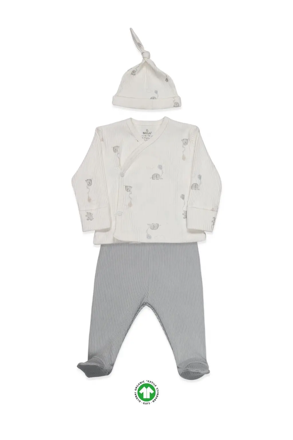 Bistyle Flying Elephant 3'Lü Zıbın Takım 13111 Ekru Gri
