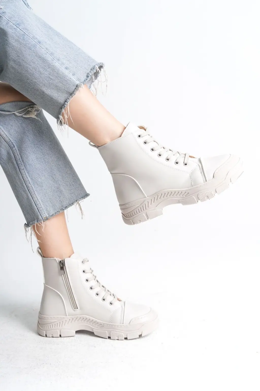 Omarı Rahat ve Şık Kadın Botu CKısa Topuklu Krem Ayakkabı