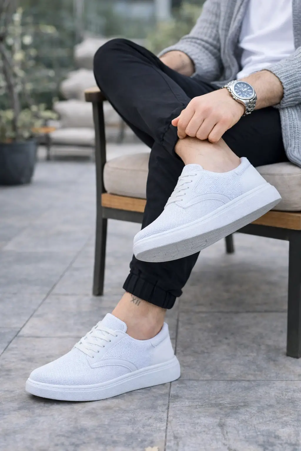 Modern Erkek Bağcıklı Triko Ayakkabı - Beyaz