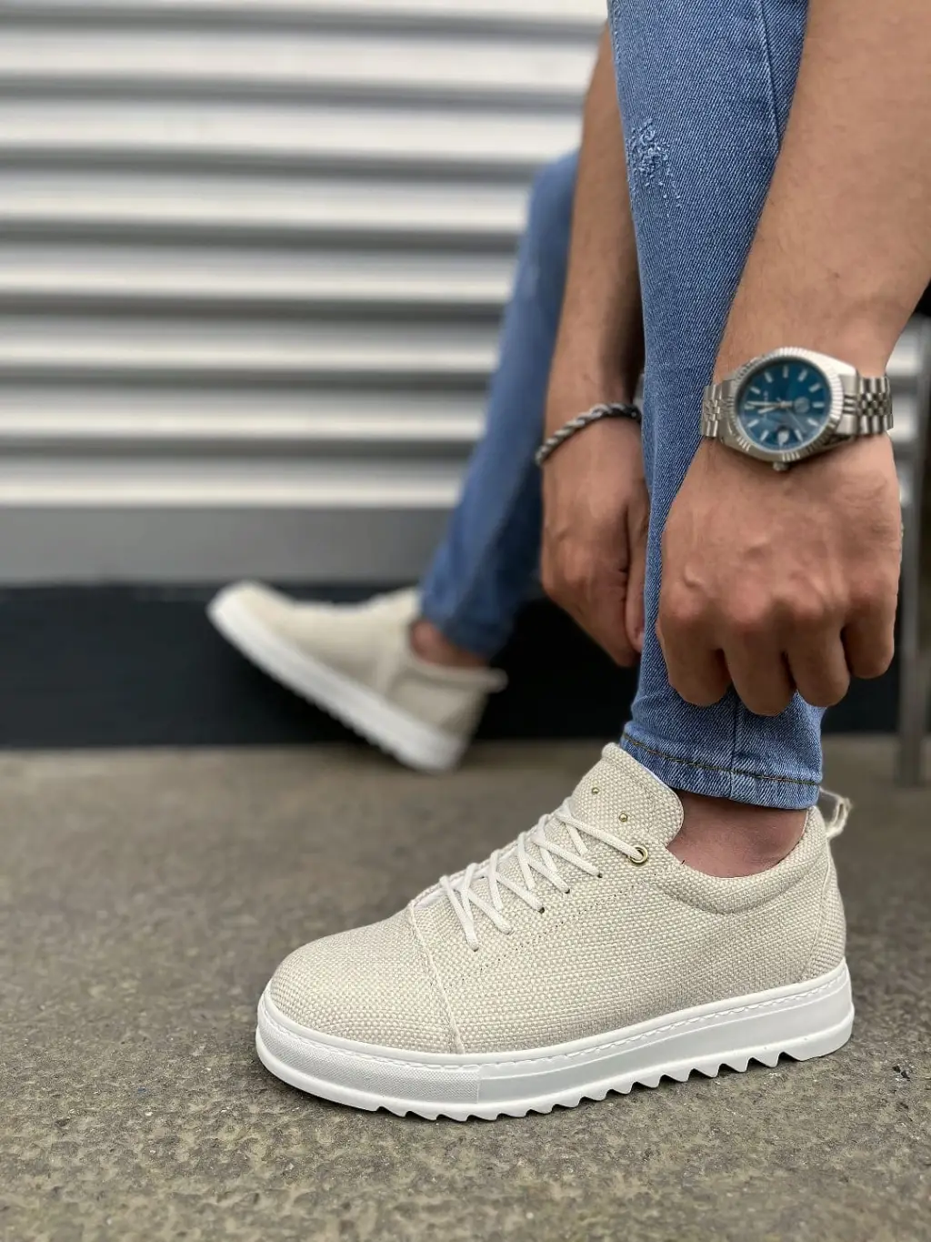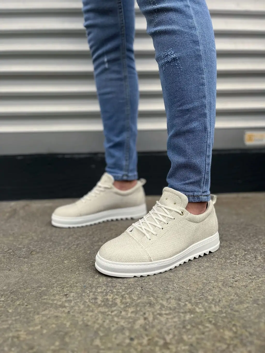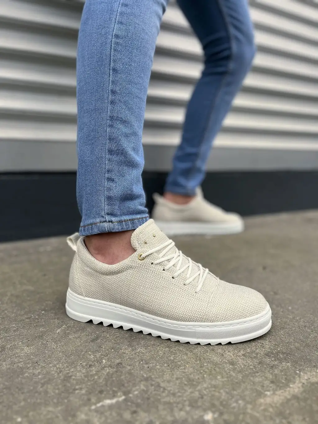 Trend Bağcıklı Erkek Keten Spor Ayakkabı - Beyaz