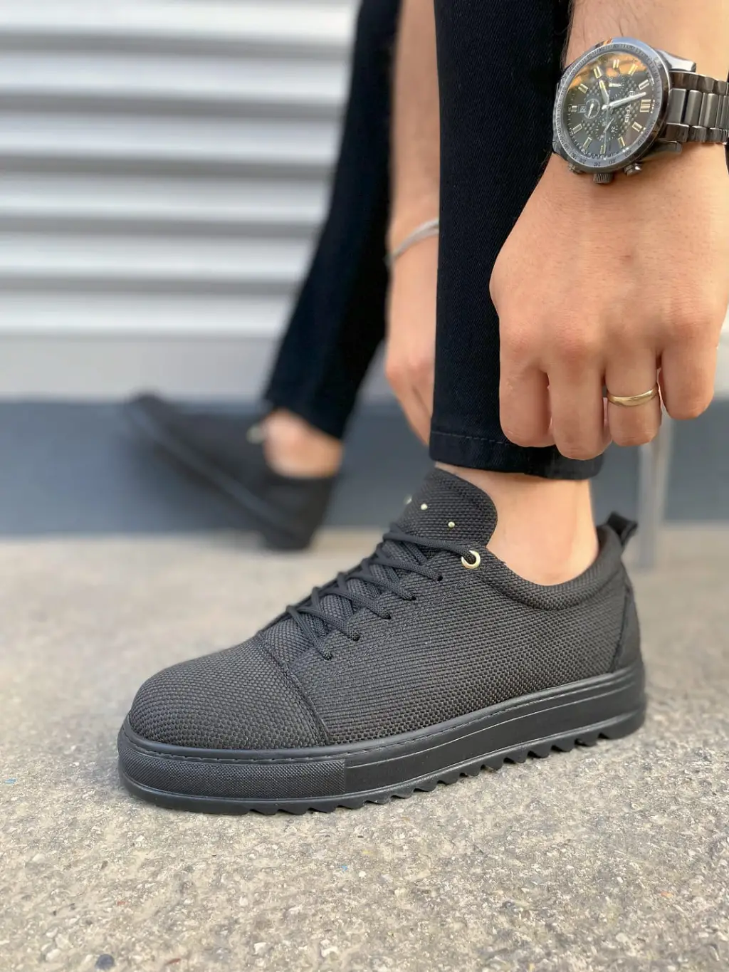 Yenilikçi Bağcıklı Keten Erkek Spor Ayakkabı - Siyah