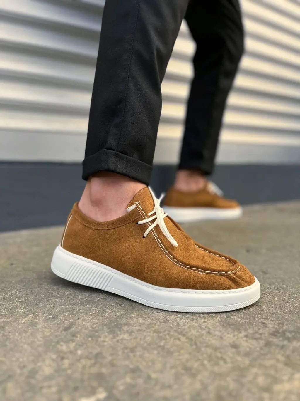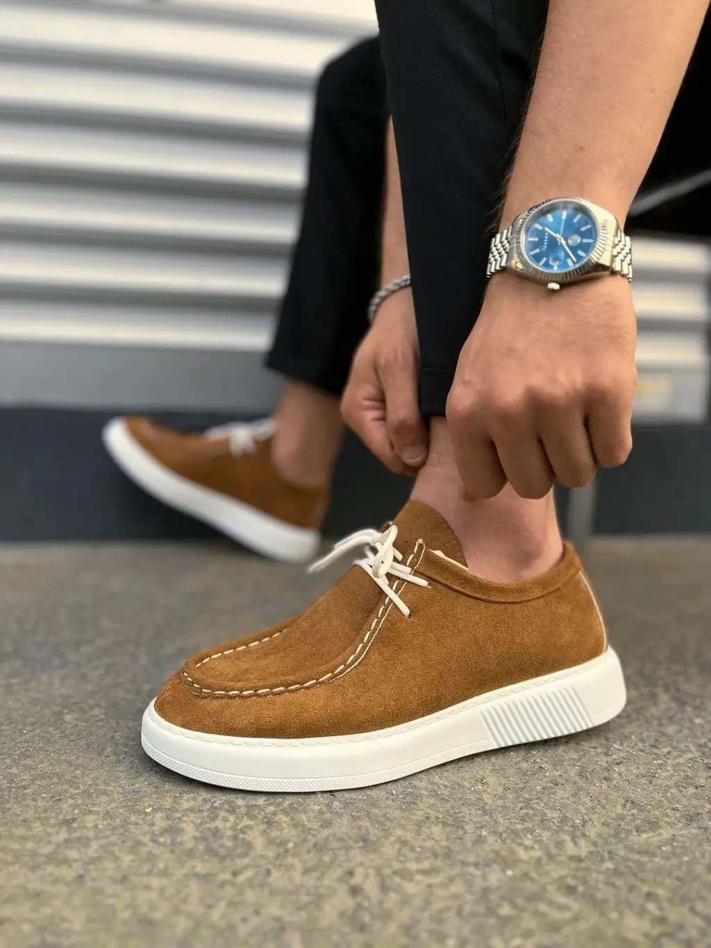 Modern Bağcıklı Süet Erkek Spor Ayakkabı - Taba
