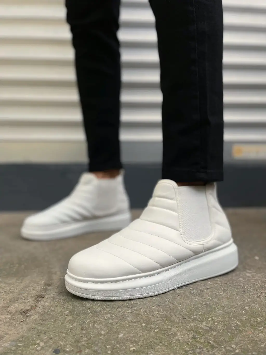 BN205 Boston Bağcıksız Rahat tabanlı ayakkabı Tabaan Cilt Erkek Spor Bot CBT - Beyaz