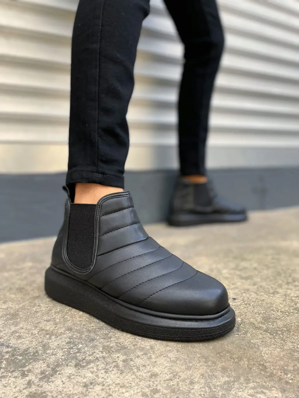 BN205 Boston Bağcıksız Rahat tabanlı ayakkabı Tabaan Cilt Erkek Spor Bot CGünlük Şık - Siyah