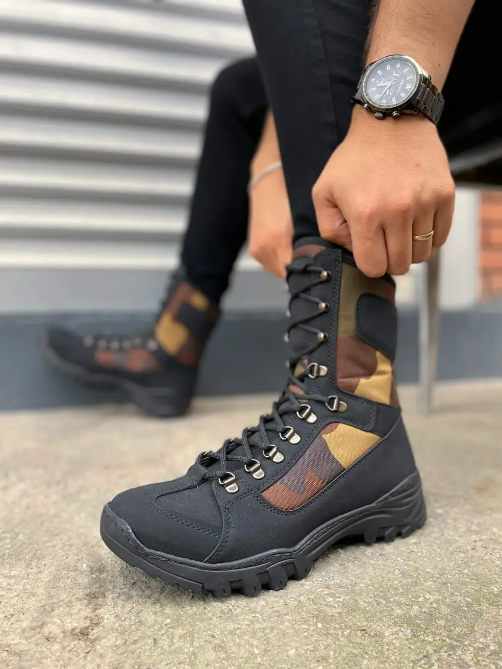 BN999 Strike Bağcıklı Rahat tabanlı ayakkabı Tabaan Günlük Cilt Erkek Askeri Postal Bot CGünlük Şık Siyah/Haki