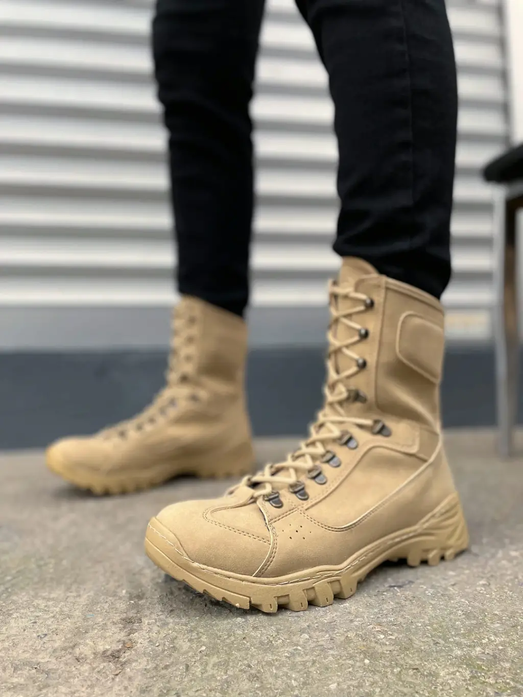 BN999 Strike Bağcıklı Rahat tabanlı ayakkabı Tabaan Günlük Süet Erkek Askeri Postal Bot SKısa Topuk Kum