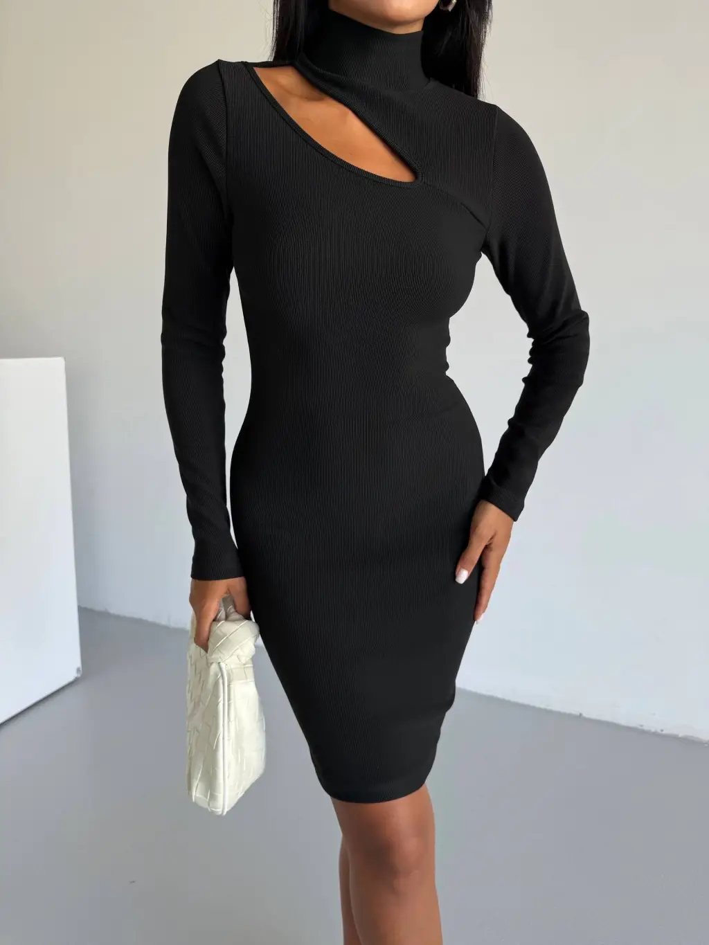 Şıklığınızı ve tarzınızı ön plana çıkarmak istiyorsanız siyah f2333 Boğazlı Göğüs Dekolteli Elbise tam da size göre!