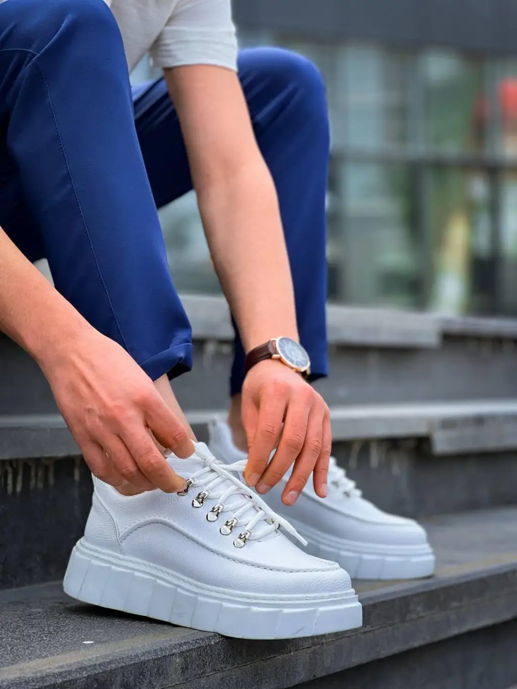 Trend Beyaz Yüksek Taban Spor Ayakkabı