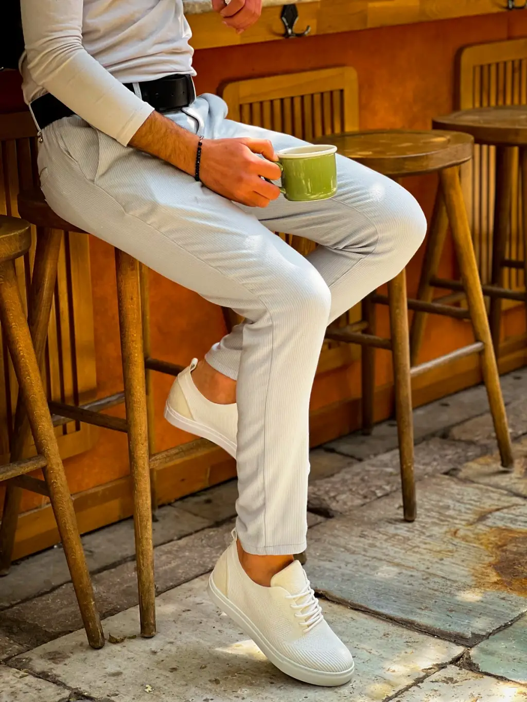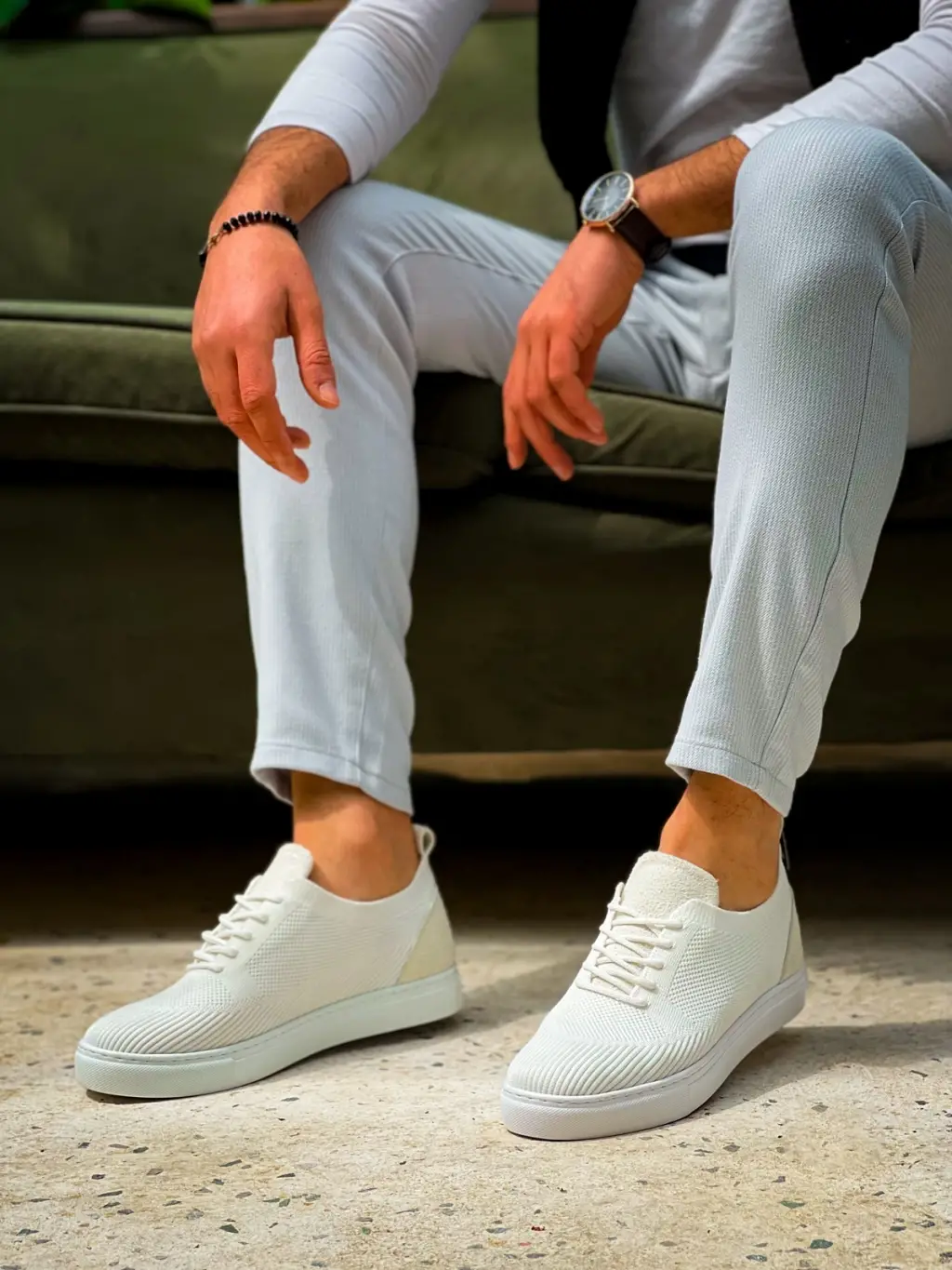 Modern Beyaz Triko Bağcıklı Erkek Ayakkabı
