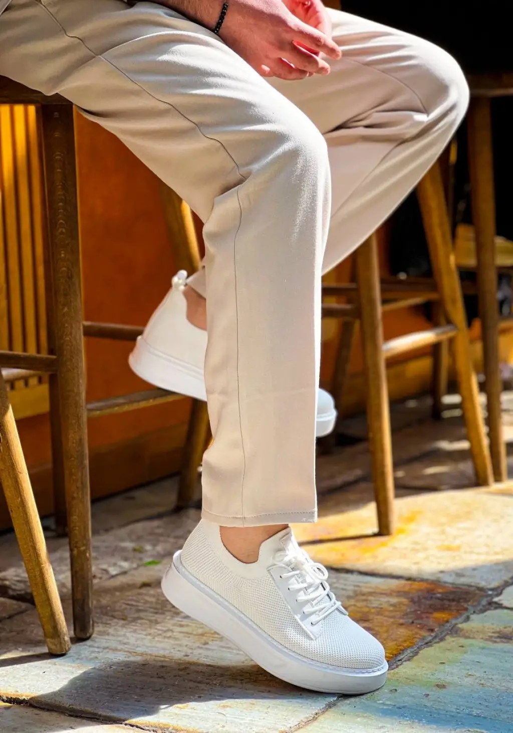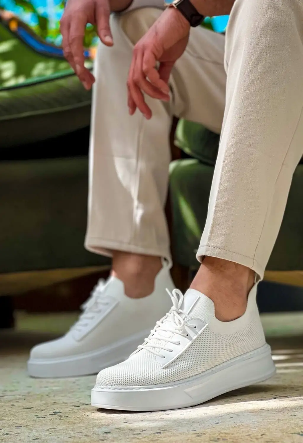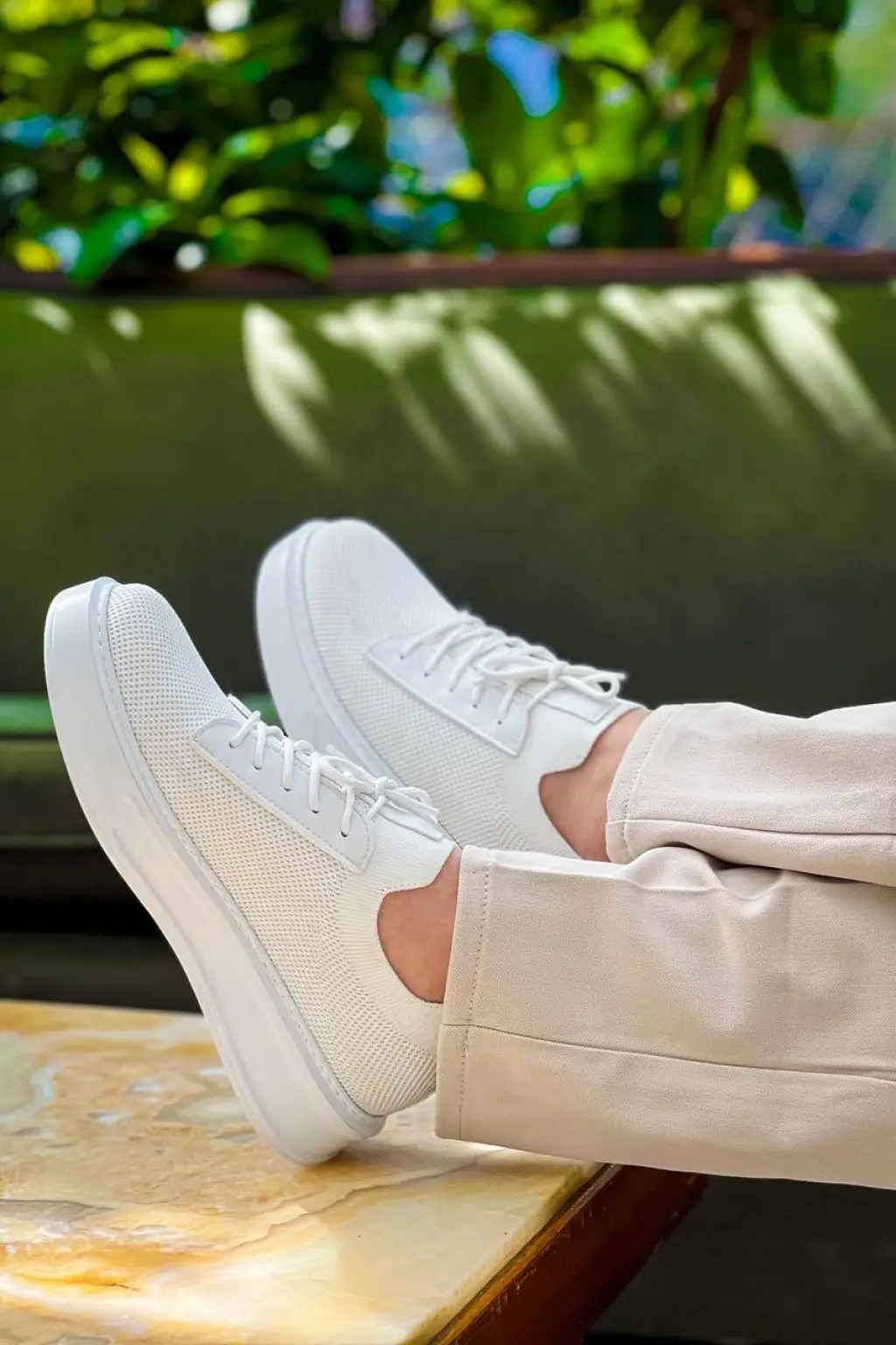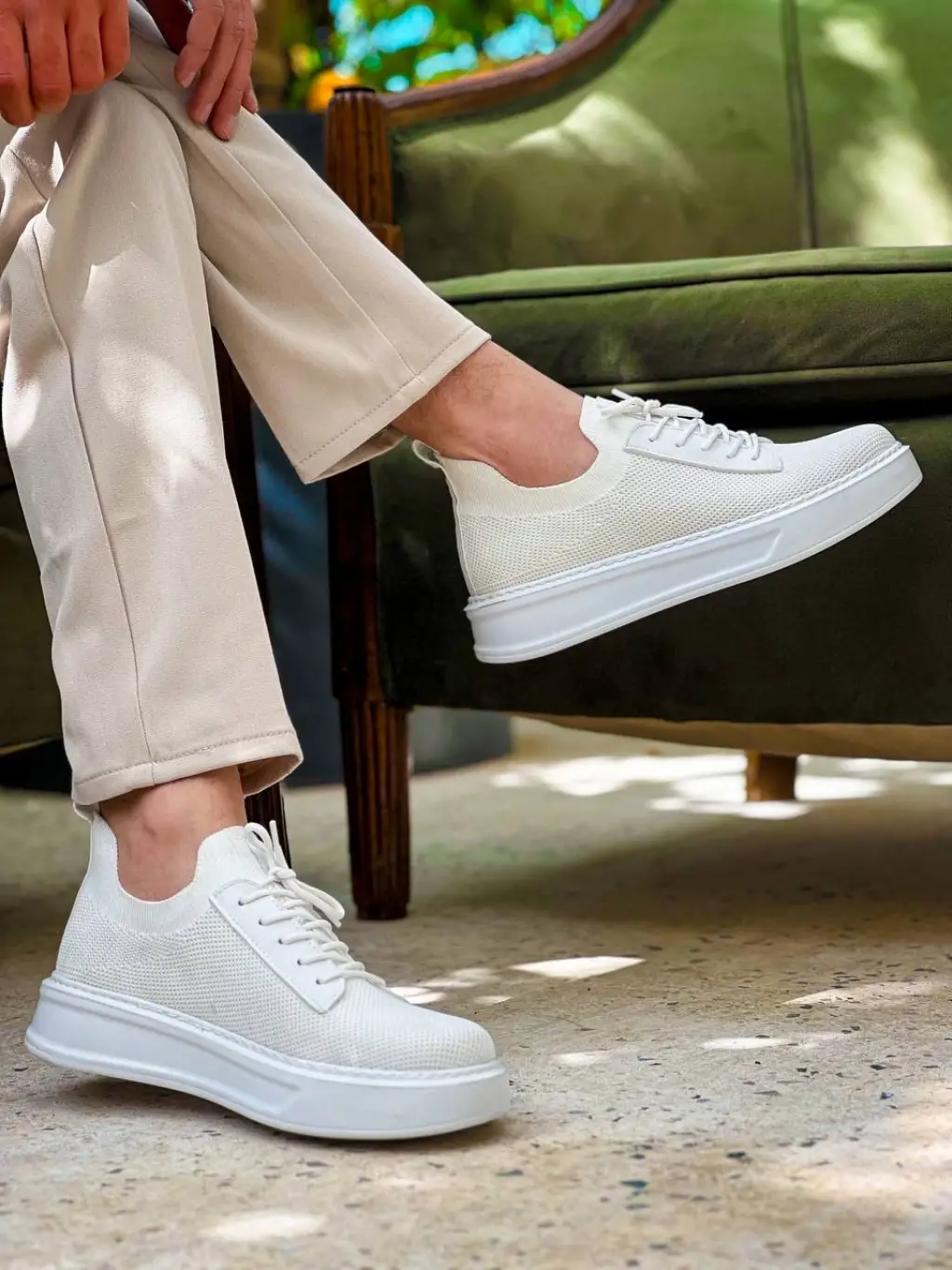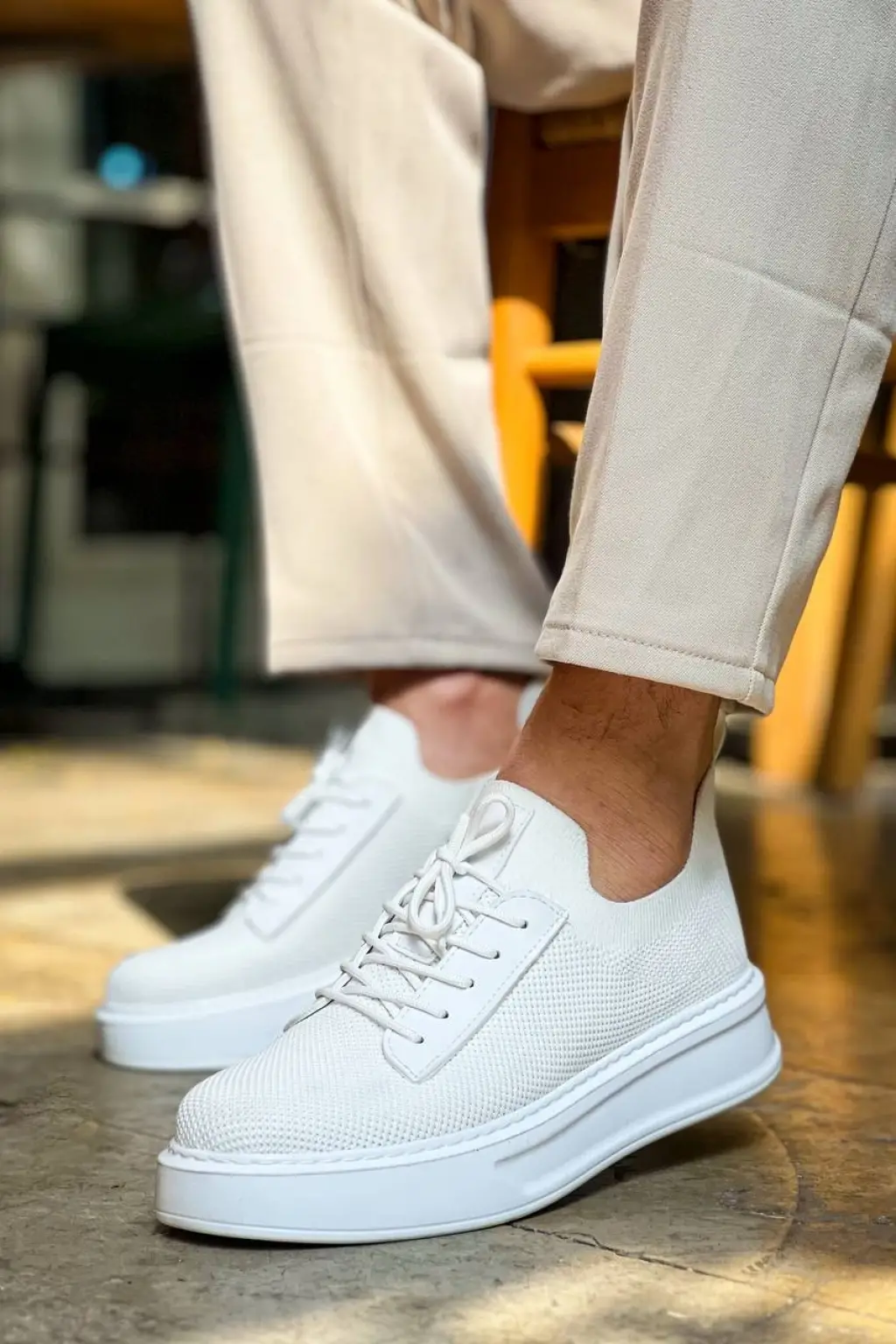 Trend Beyaz Bağcıklı Triko Erkek Ayakkabı
