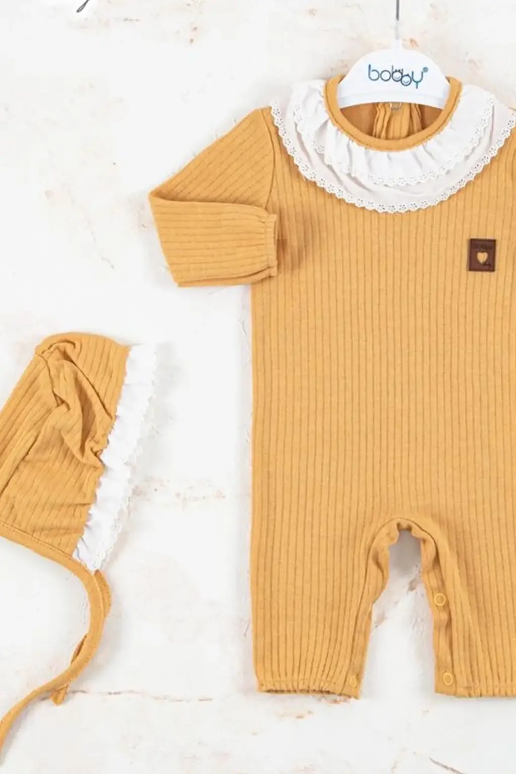 Brode Nakışlı Şapkalı % 100 Pamuk Kız Bebek Tulumu